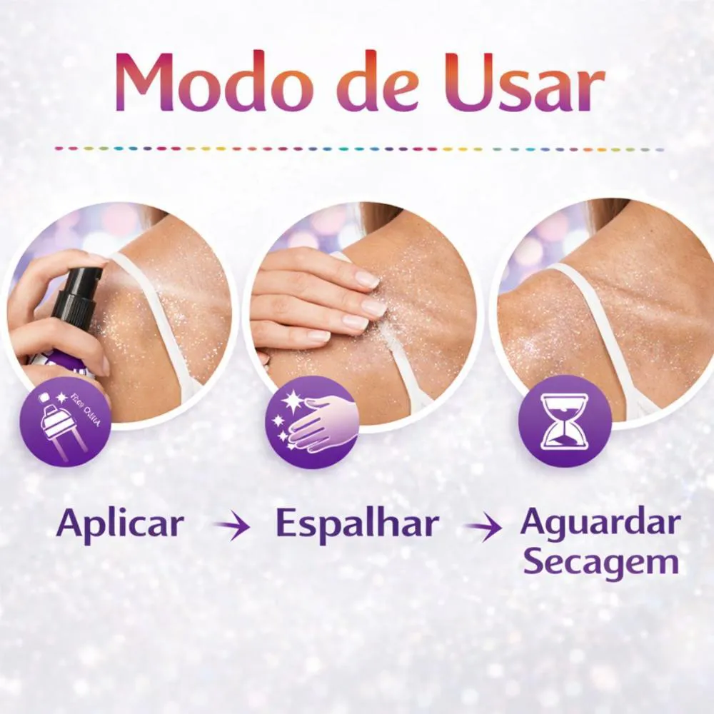 - Versátil para uso no corpo, rosto e cabelo, permitindo looks criativos para festas e eventos.
