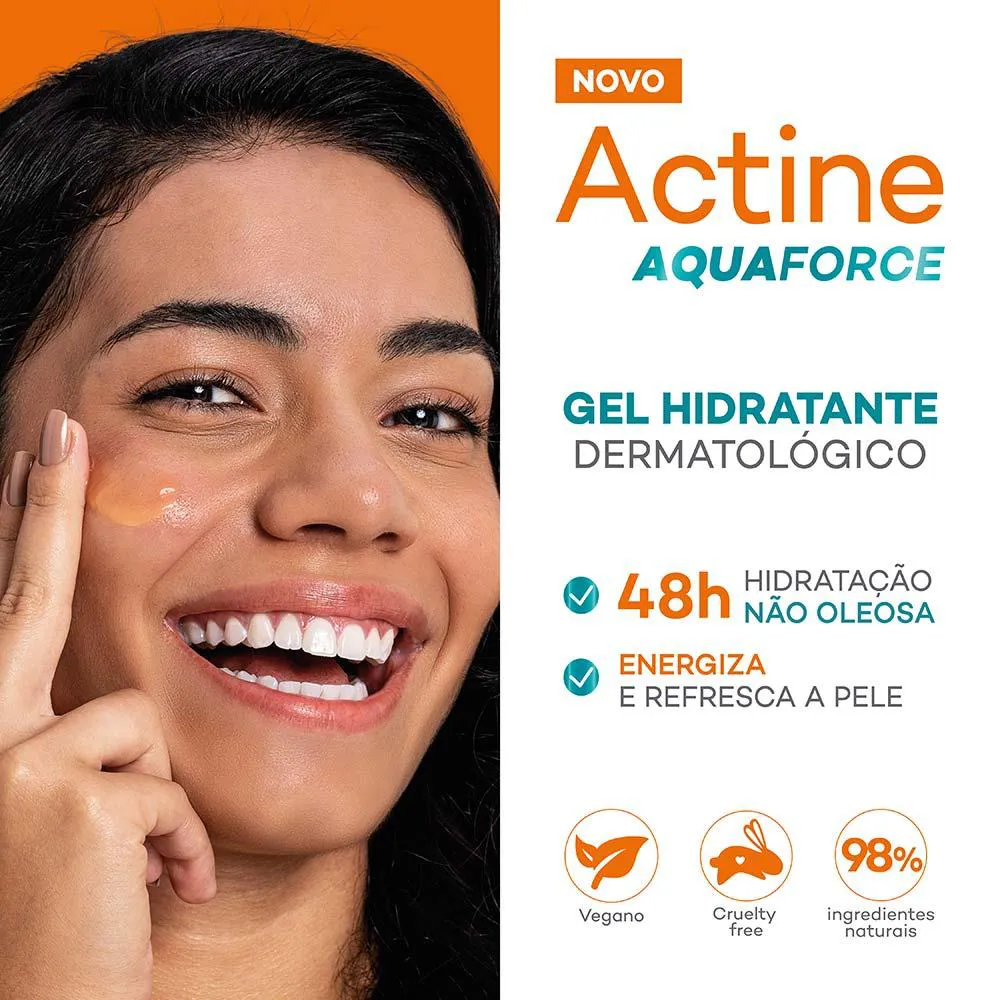 Darrow Actine Aquaforce Hidratante Dermatológico é uma fórmula vegana, desenvolvida com dermatologistas e é cruelty free.