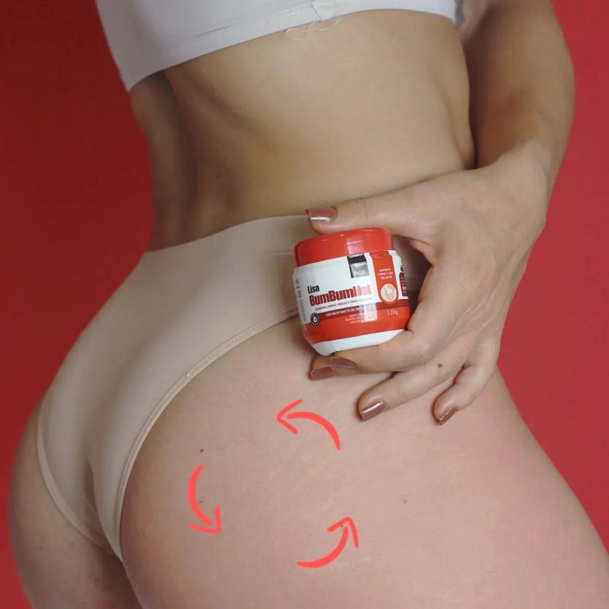 Aplique na região do bumbum ou áreas como coxas para redução de celulite e firmeza da pele.