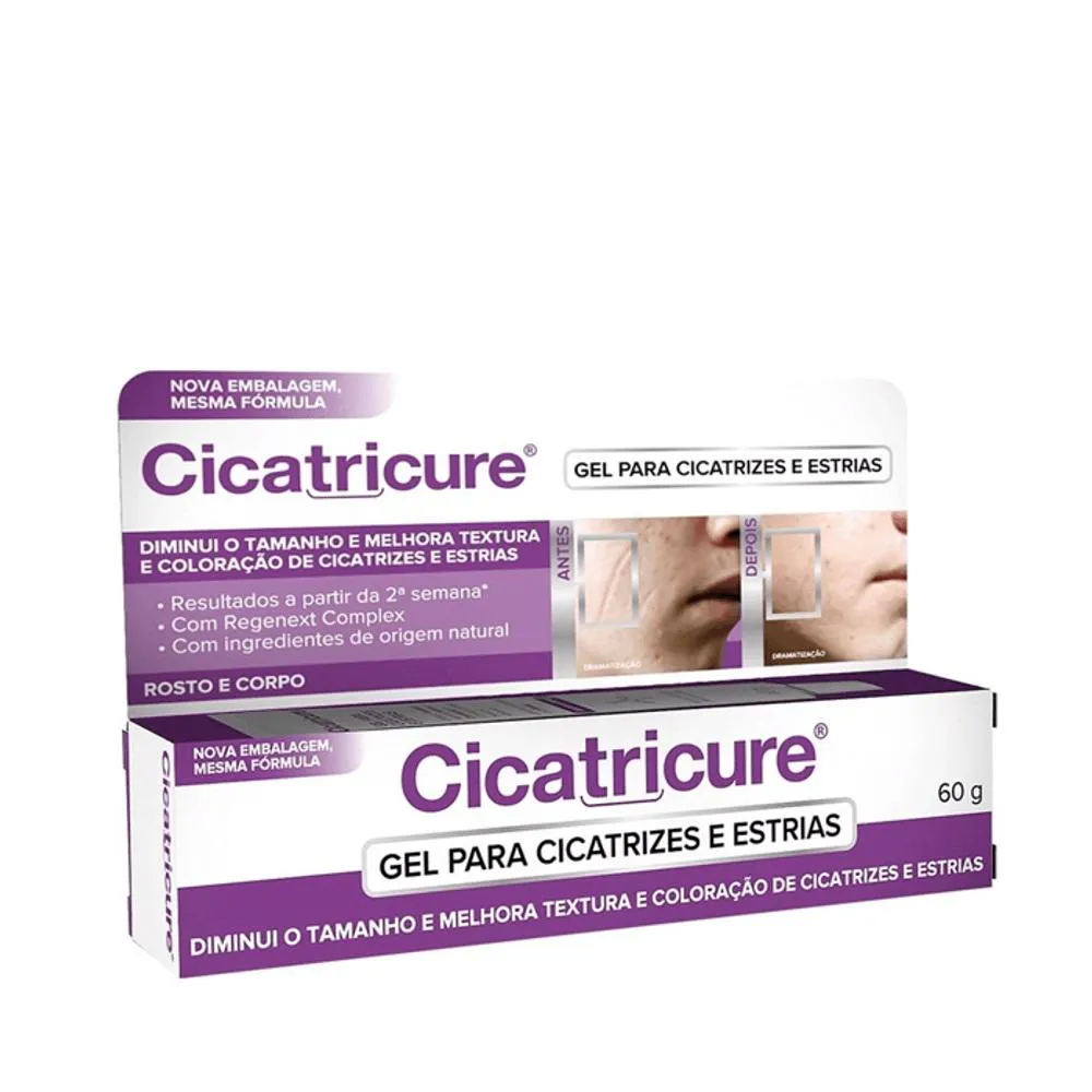O Cicatricure Gel é um produto desenvolvido com tecnologia inovadora para tratamento de cicatrizes e estrias, composto por uma combinação de extratos naturais como Allium cepa, camomila, tomilho, conchas marinhas, nogueira, babosa, centela e óleo de bergamota. Sua fórmula específica tem como objetivo principal diminuir o tamanho, melhorar a textura e a coloração de cicatrizes e estrias brancas e vermelhas, proporcionando hidratação e tratamento estético da pele.