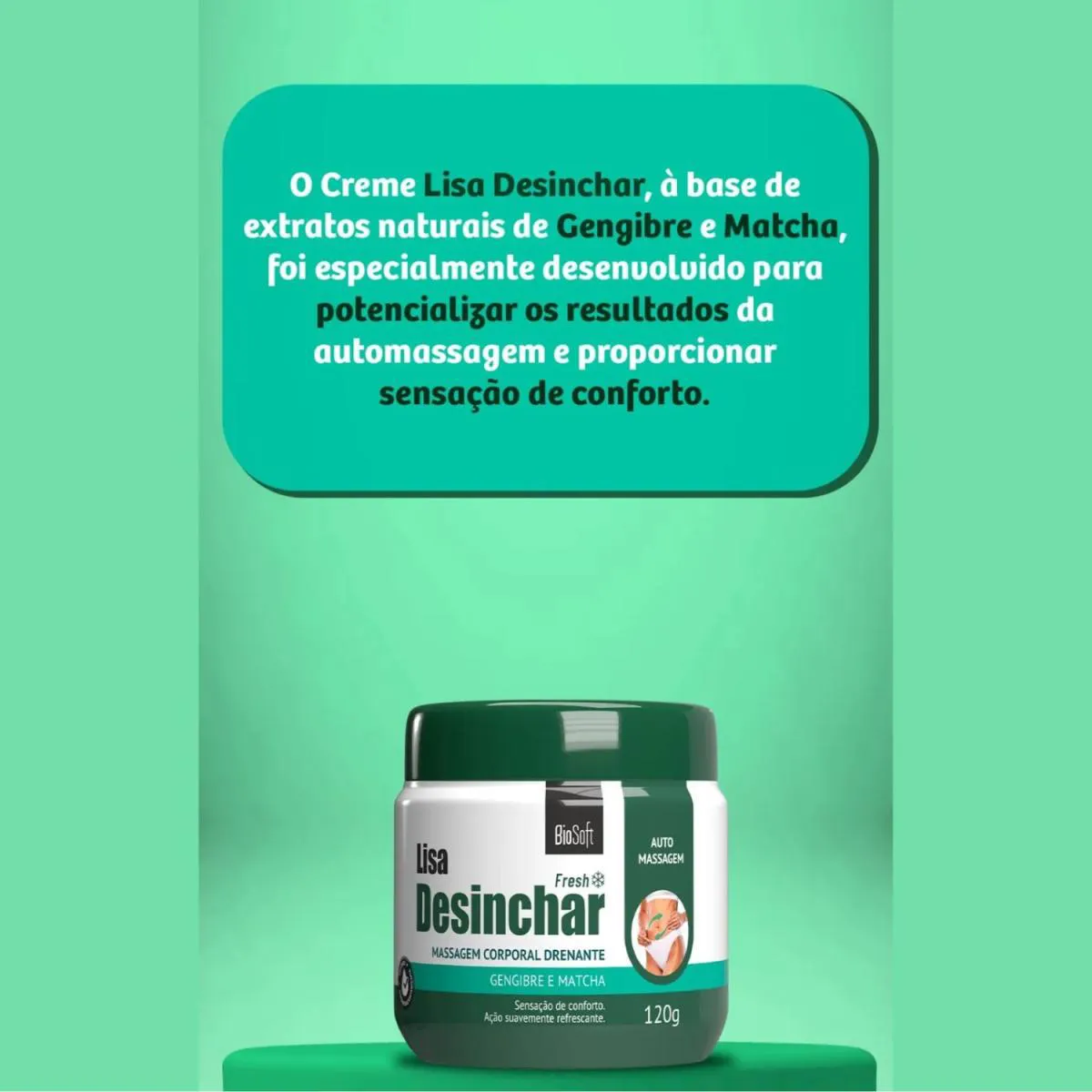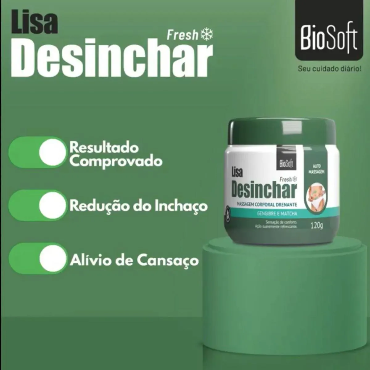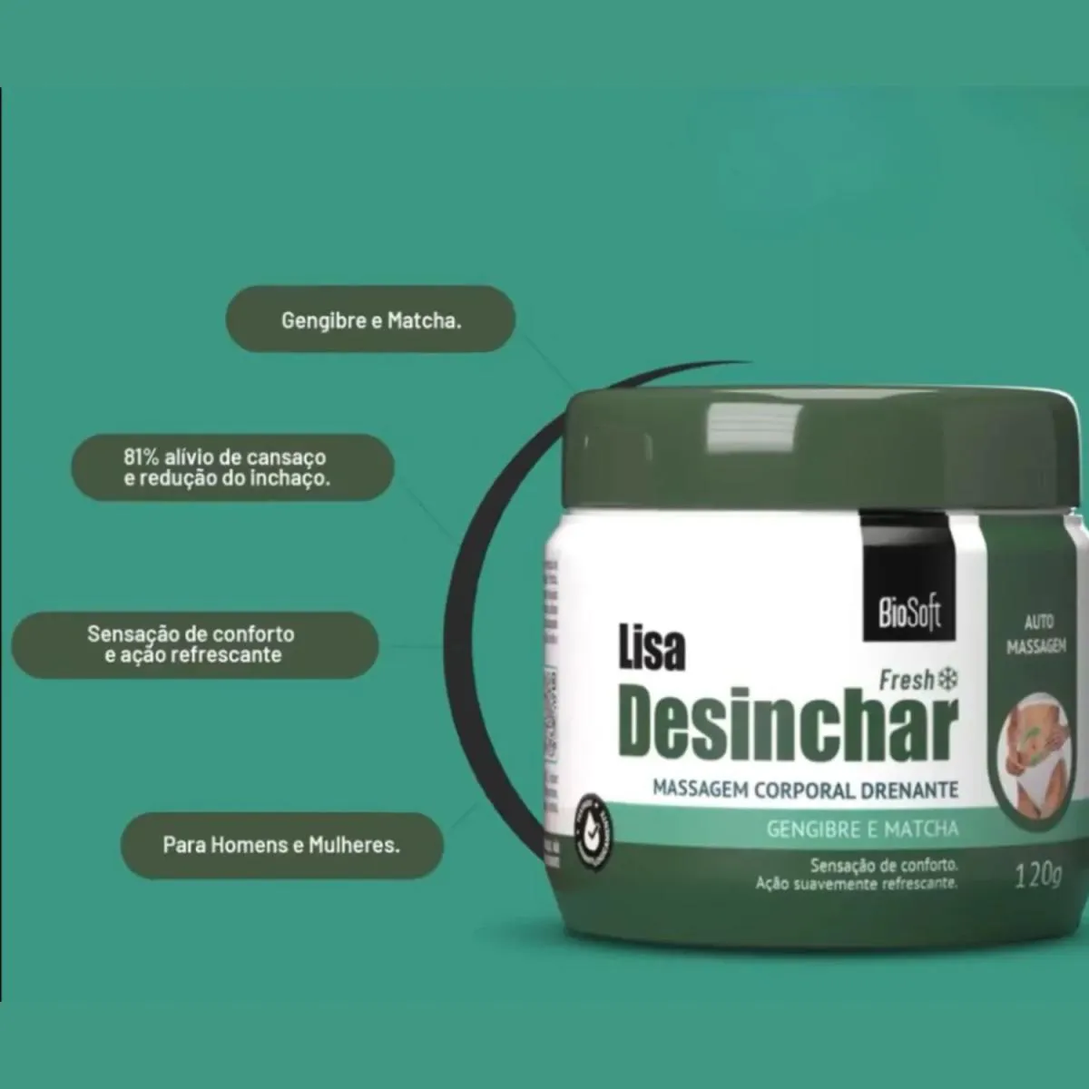 Descubra o segredo para uma sensação de alívio e bem-estar com o incrível creme de auto massagem para desinchar o corpo Lisa Desinchar Fresh da Bio Soft!