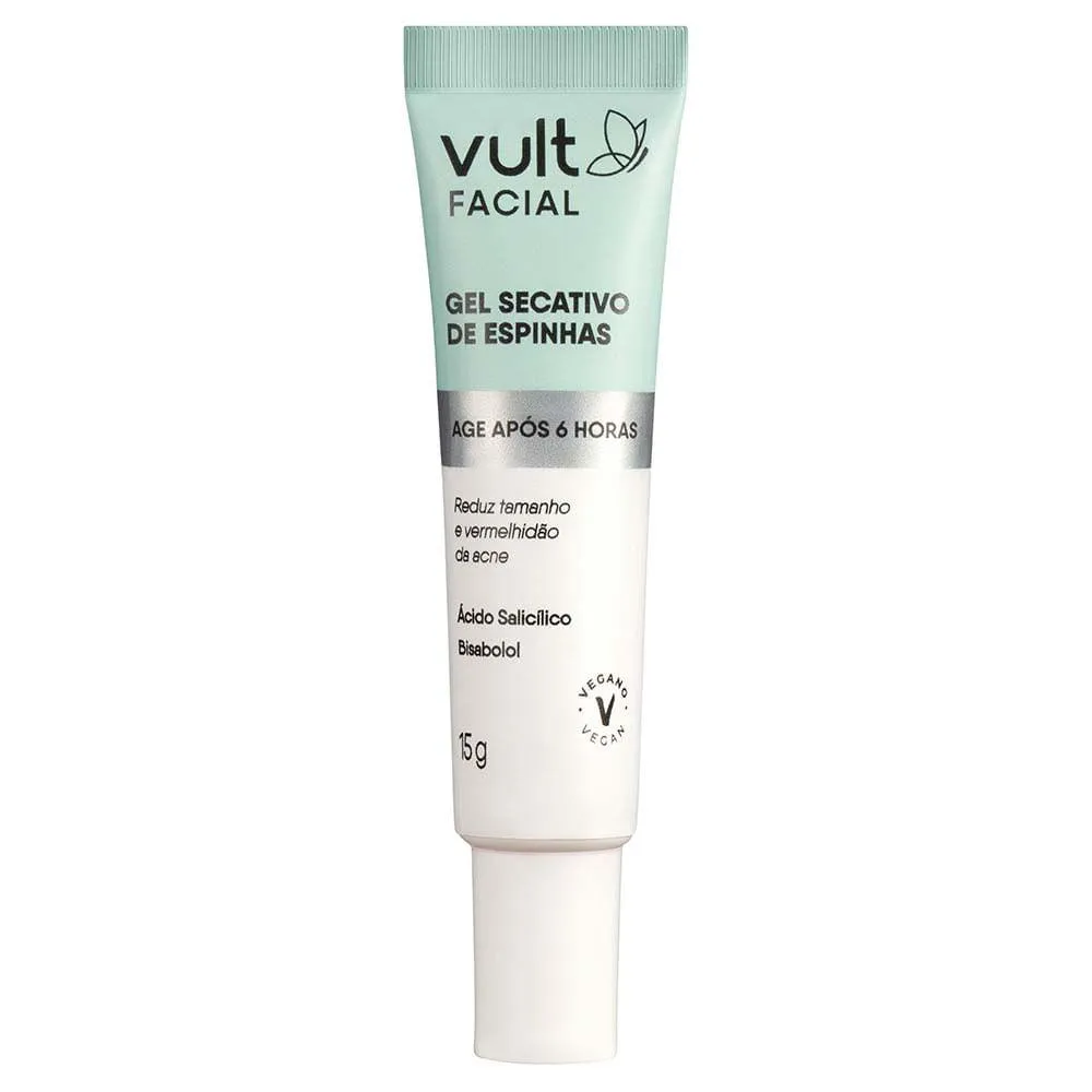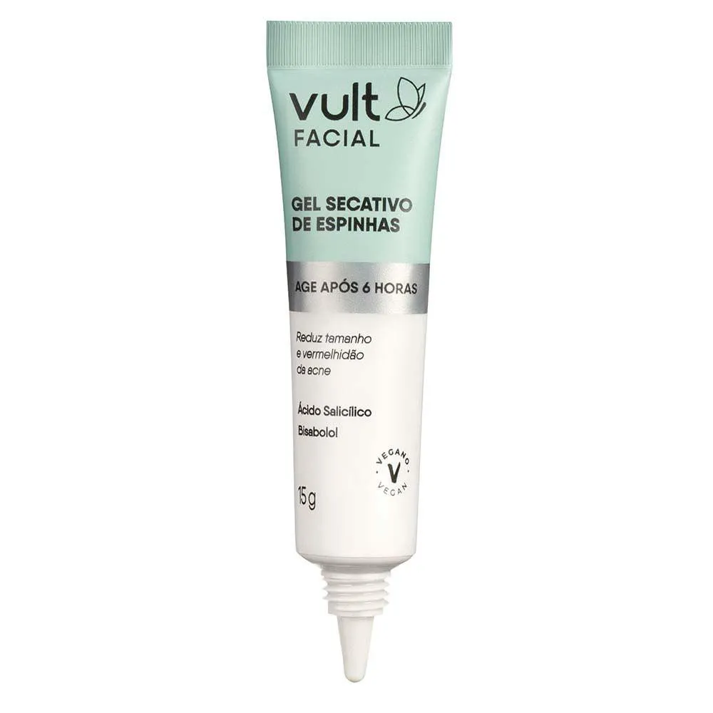 O gel secativo de espinhas de Vult Facial reduz o tamanho e vermelhidão da acne após 6 horas da aplicação, melhorando o seu aspecto.