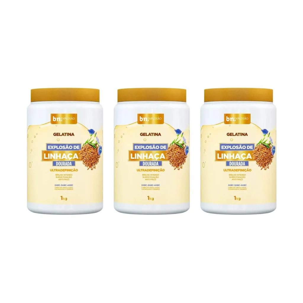 Gelatina Beleza Natural 1000G Explosao Linhaça - Kit C/ 3Un