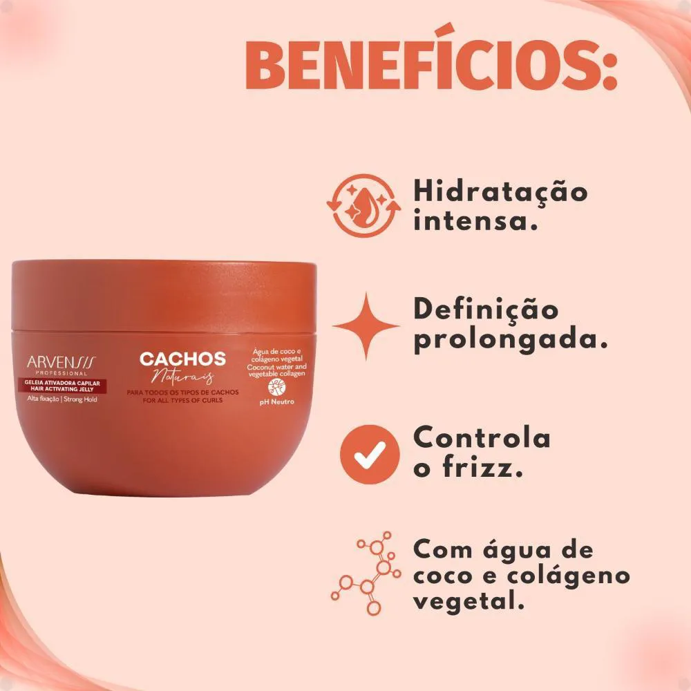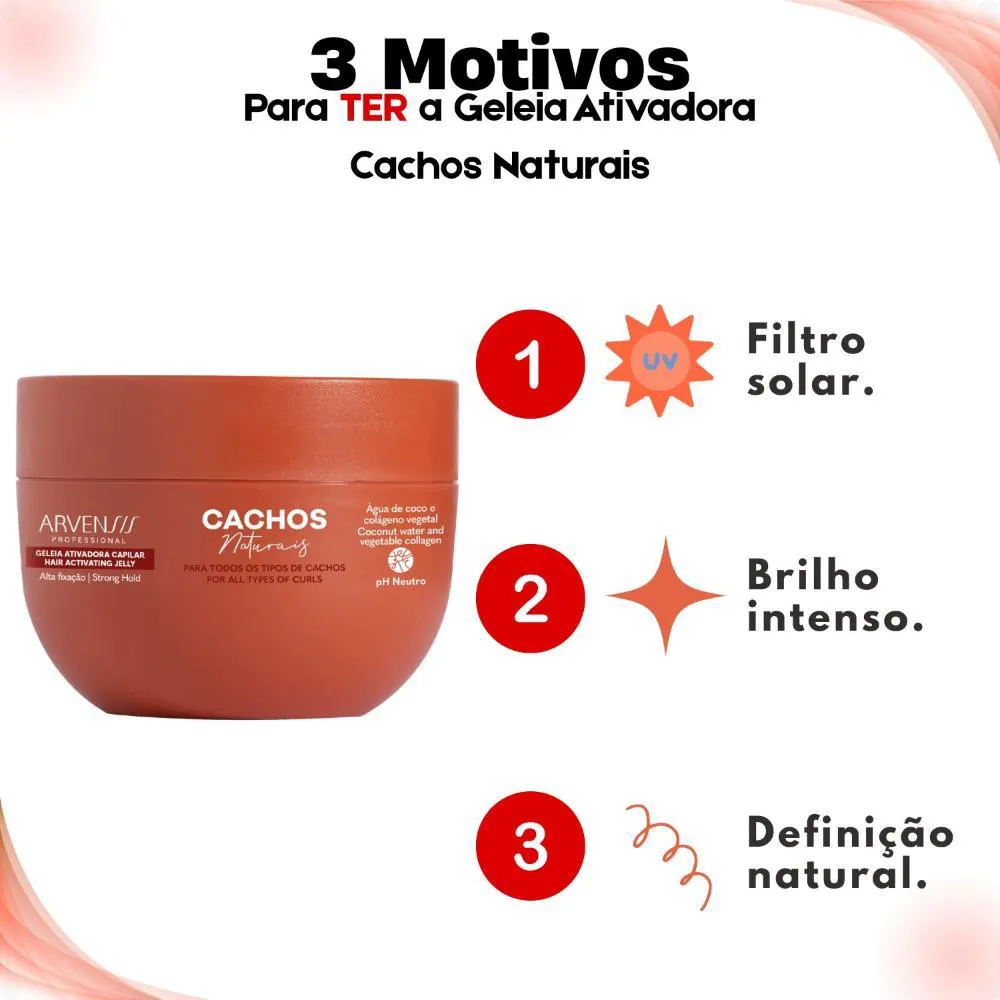 beleza natural com vitalidade e movimento. Ideal para quem busca praticidade e resultados surpreendentes, esta geleia é perfeita para realçar a beleza natural dos seus cachos, proporcionando um visual impecável e cheio de personalidade.