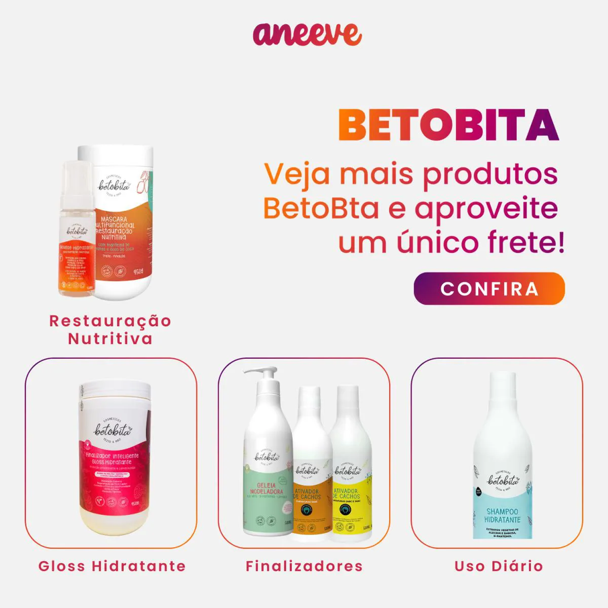 A Geléia Modeladora de Cachos BetoBita foi desenvolvida para quem busca volume, definição e hidratação sem comprometer a leveza dos fios. Com textura gelatinosa e alta concentração de ativos modeladores e umectantes, promove toque sedoso, brilho intenso e selagem das cutículas. Seus principais ativos, Extrato de Babosa e D-Pantenol, garantem hidratação profunda, controle do frizz e um movimento natural incrível. Perfeita para finalizar, definir e valorizar a curvatura dos cabelos cacheados e crespos! ✔ Indicado para curvaturas 2ABC, 3ABC e 4ABC✔ Definição sem pesar e volume na medida certa
