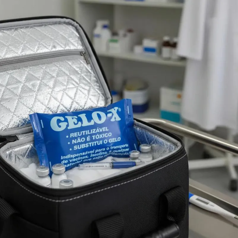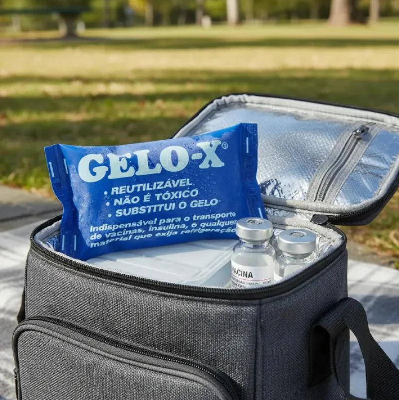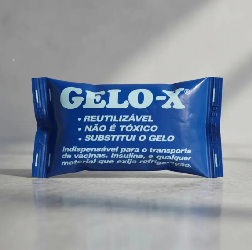 GELO-X FLEXÍVEL PEQUENO Comprimento: 13 cm Largura: 8 cm Trazemos o GELO -X é um gelo Reutilizável que é usado para transporte de vacinas, insulina,medicamentos e qualquer material que exija a refrigereção. Indicado também para dentistas após implantes e pequenas cirurgias e uso em viagens e campimg e pescarias. É reutilizável e mantém a temperatura por mais tempo que o gelo. Antes de usar, deixar no congelador por uma noite (não abaixo de 15 º negativos). Em caixas térmicas, durar em média 6 horas. Cuidado: Não deixar cair depois de congelado e não manter no congelador sem retirar mais de 48 horas, pois o plástico pode se tornar quebradiço. Composição Produto atóxico Gel à base de celulose vegetal PRODUTO ISENTO DE REGISTRO PELO MINISTÉRIO DA SAÚDE
