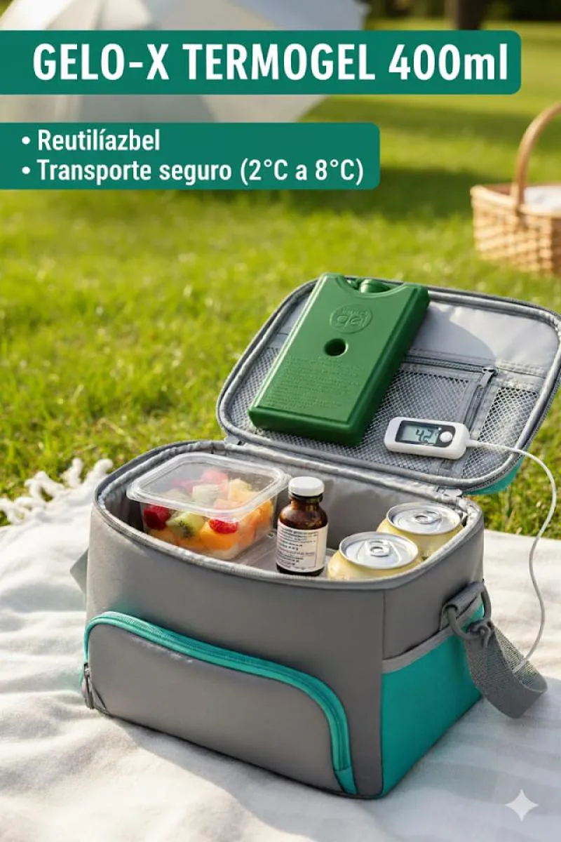GELO-X RIGIDO 400 ML Mantenha a temperatura Perfeita: Apresentamos o Gelo-x Termogel 400 ml. Cansado de gelo que derrete rápido e molha tudo? Diga adeus ao estresse da refrigeração. GELO-X TERMOGEL -A solução Rígida e Reutilizavel para a sua vida! Diferenciais: *Refrigeração superior : Mantém a temperatura baixa por muito mais tempo. Ideal para o transporte de produtos sensiveis; *Essencial para a saúde: Perfeito para o transporte de vacinas,medicamentos,materiais hospitalares e clínicos que exigem temperatura controlada(2-8º C); *Aliado na alimentação para manter alimentos e bebidas pereciveis mais frescos ;, *Aliado para viagens e acampamentos, entre outros. MODO DE USO: Deixar no congelador 72 horas antes de usar até solidificar; Congelar o frasco deitado para o gel expandir de maneira uniforme . Para uso comercial, ideal congelar em freezer a 30 ºC negativos Composição: Gel a base de polimero , água e conservante