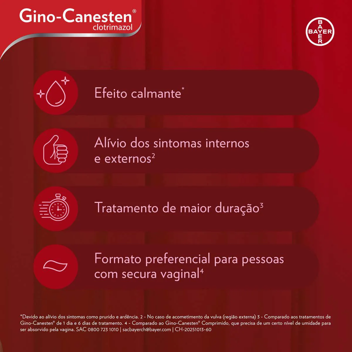 - Tratamento eficaz contra candidíase vaginal: Gino-Canesten® combate infecções fúngicas causadas por Candida, aliviando rapidamente sintomas como coceira e corrimento.
