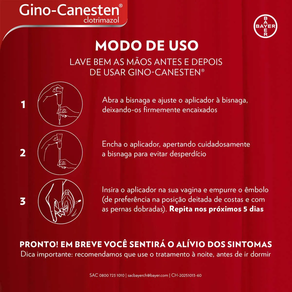 Utilize Gino-Canesten® creme vaginal conforme as instruções de aplicação. Se tiver dúvidas, consulte um médico ou farmacêutico.