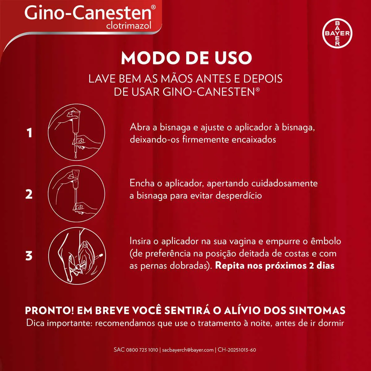 Utilize Gino-Canesten® 3 creme vaginal conforme as instruções de aplicação. Se tiver dúvidas, consulte um médico ou farmacêutico.