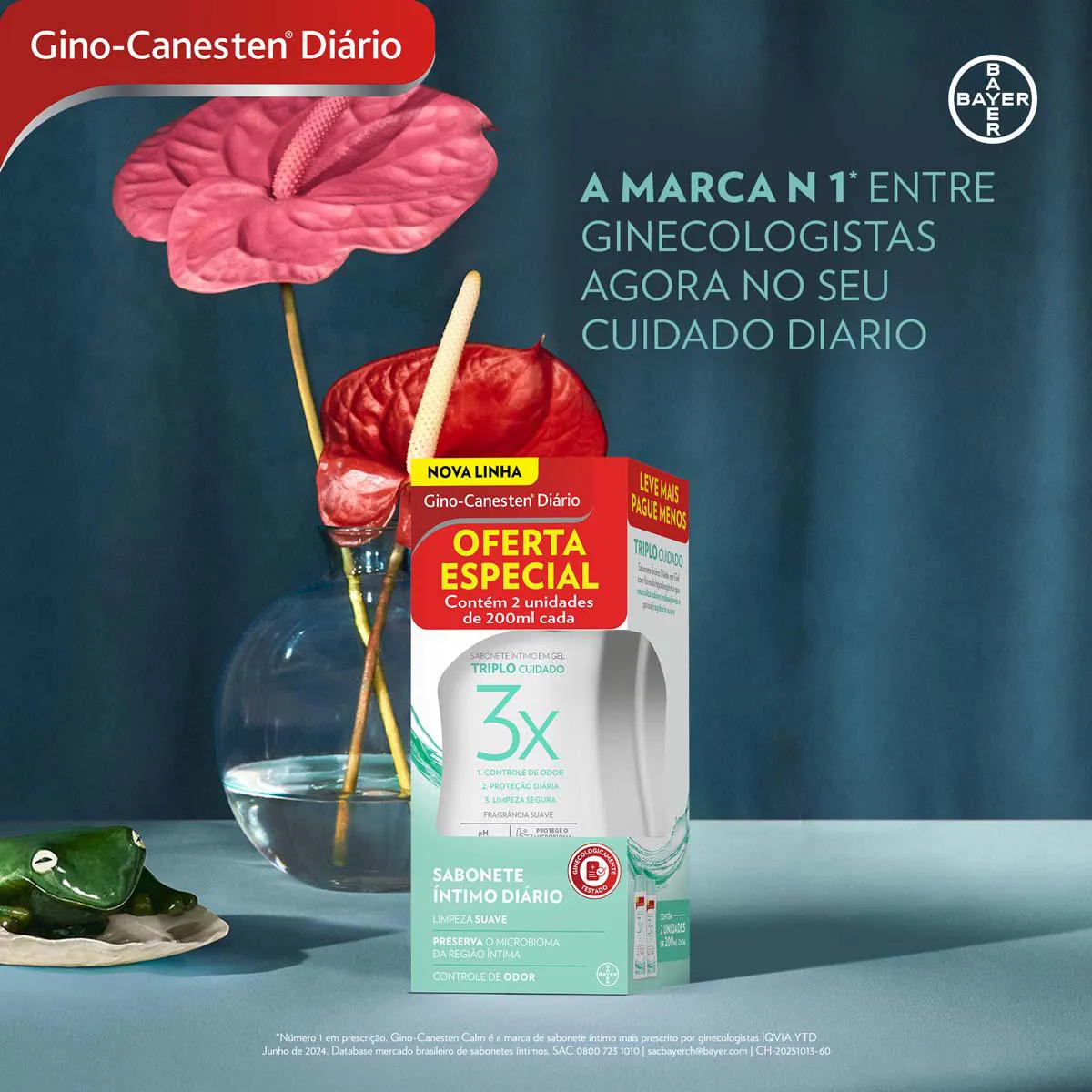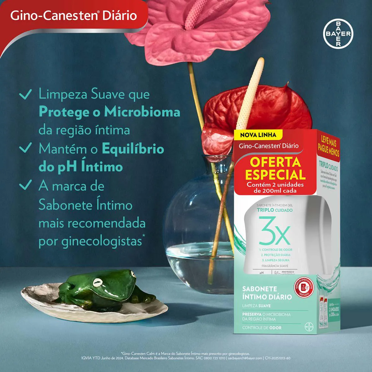 O Gino-Canesten Diário Triplo Cuidado oferece uma limpeza íntima suave que protege o microbioma vaginal e mantém o equilíbrio do pH íntimo.