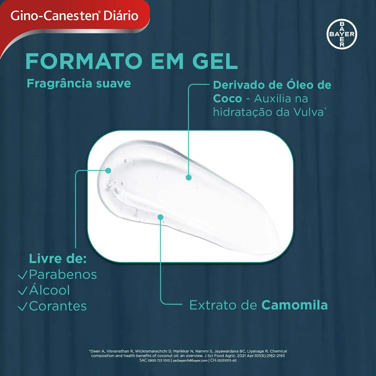 Sua fórmula foi cuidadosamente desenvolvida: mantém o pH equilibrado, é hipoalergênico, ginecologicamente testado e livre de corantes e parabenos.