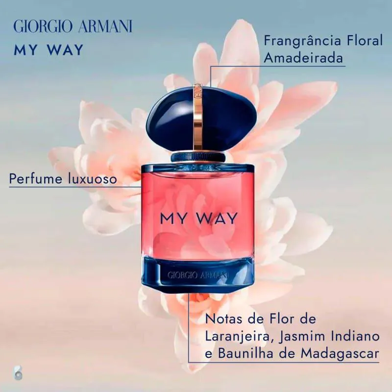 Descrição Geral: Giorgio Armani My Way Intense é uma fragrância feminina que exala intensidade e sofisticação. A abertura da fragrância é marcada pelo frescor cítrico e vibrante da flor de laranjeira e da laranja amarga, proporcionando uma sensação energizante. O coração da fragrância é dominado por um bouquet floral luxuoso, onde a tuberosa e o jasmim se entrelaçam, criando uma combinação rica e envolvente. As notas de fundo trazem a doçura calorosa da baunilha de Madagascar, combinada com a profundidade cremosa do sândalo, resultando em uma base duradoura.