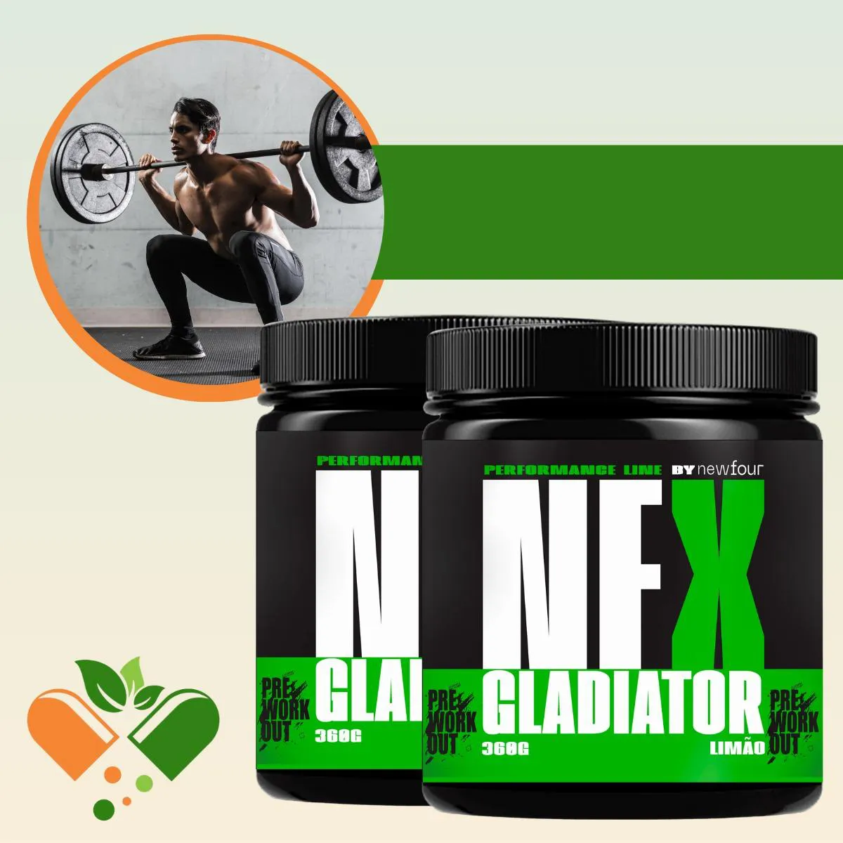 Gladiador Pré Treino Sabor Limão Kit com 2 Potes com Total de 720G