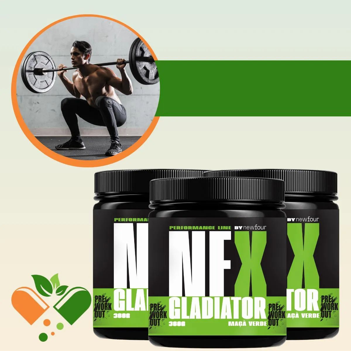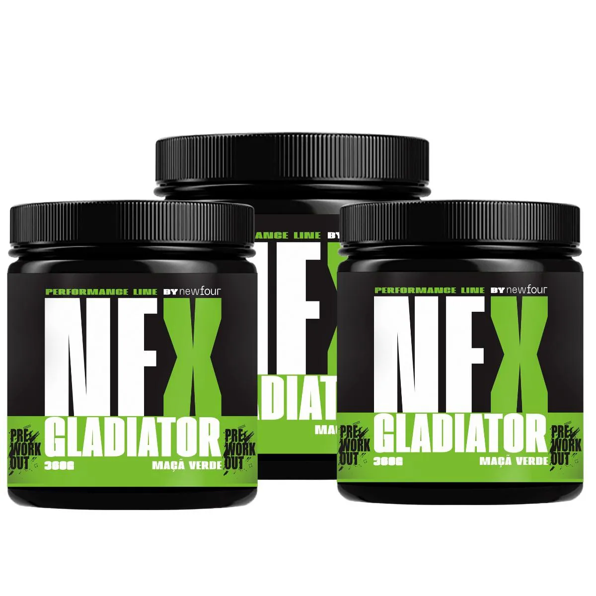 Gladiador Pré Treino Sabor Maça Verde Kit com 3 Potes com Total de 1.080G