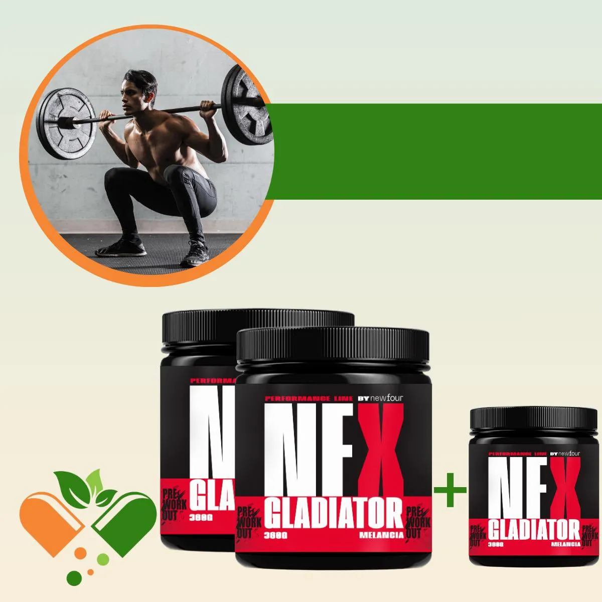 Gladiador Pré Treino Sabor Melância Compre 2 Leve 3 com Total de 1.080 Capsulas