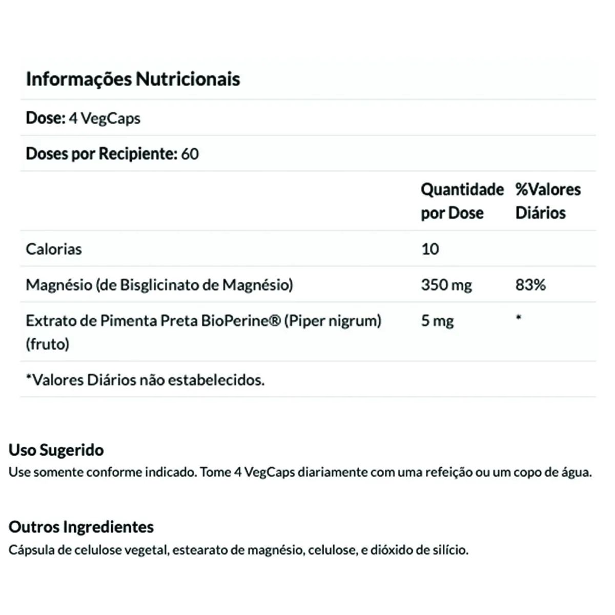 ATENÇÃOProduto original importadoProduto disponível no BrasilSUGESTÃO DE USO: Tomar 4 VegCaps diariamente com uma refeição ou um copo de água.