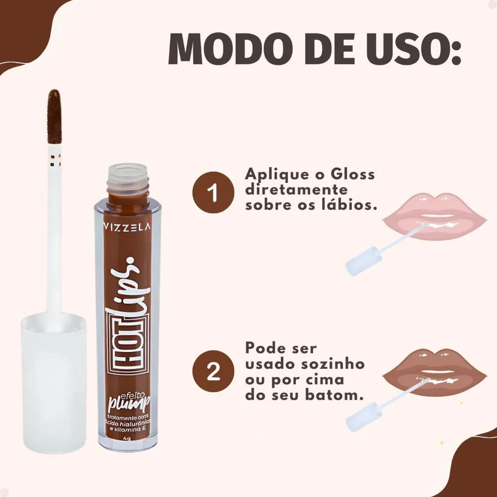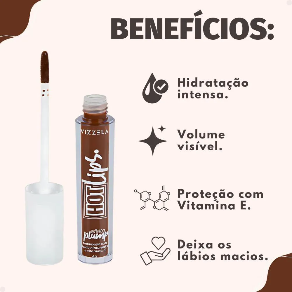 Gloss Labial Vizzela Hot Lips Efeito Plump Brown, a escolha perfeita para quem busca