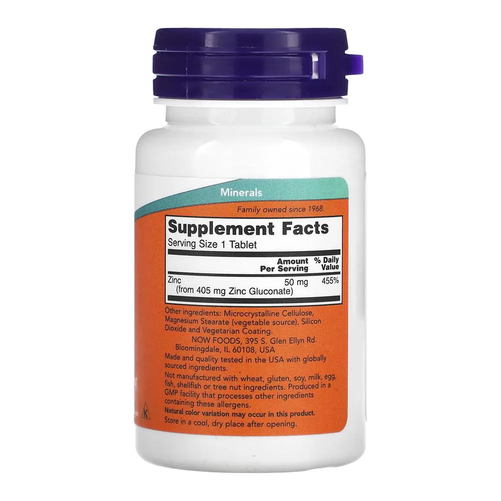 Gluconato de Zinco 50mg Now Foods 100 Tablets Importado