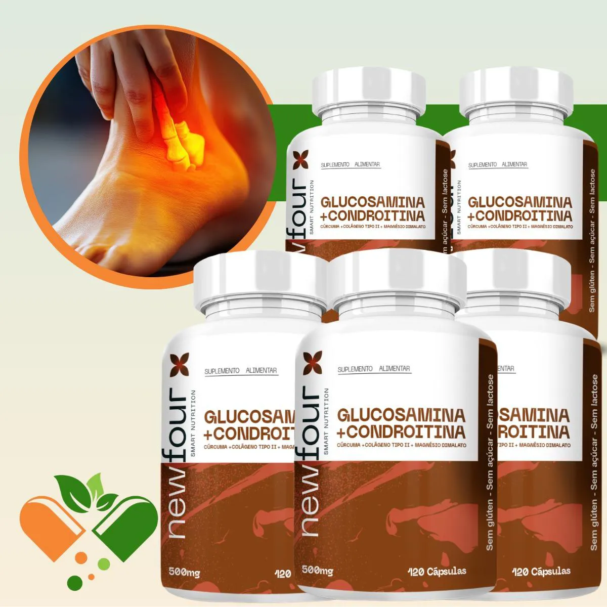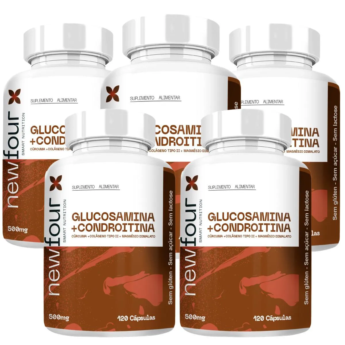 Glucosamina + Condroitina - Cúrcuma + Colágeno Tipo Ii + Magnésio Dimalato Kit com 5 Potes com Total de 600 Capsulas