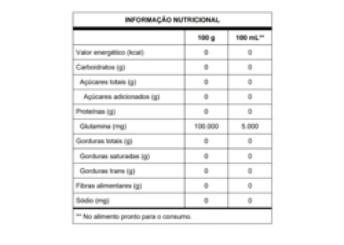 GLUTAMAX® Vitafor 300g. Módulo composto pelo aminoácido L-glutamina de alta pureza e isolada, indicado para nutrição enteral e/ou oral. Ingredientes: L-Glutamina. NÃO CONTÉM GLÚTEN. 100 % L-Glutamina de alta pureza; Praticidade de consumo: versão pote, sachê e pouch; Pode ser utilizado para módulos enteral e oral; Não contém sacarose; Não contém glúten e lactose; 100% vegetal; Zero caloria; Selo de Qualidade VLabor. PURE AMINO ACID by AJINOMOTO Co.®; Recomendação de uso: Seguir as instruções de um médico e/ou nutricionista. Para uso enteral, a aplicação do tubo ou frasco deve ser iniciada com baixos volumes e velocidade de fluxo, devendo ser aumentado aos poucos, dependendo da tolerância intestinal e do objetivo.Para evitar contaminação, medidas de higiene durante o preparo e administração devem ser instituídas.