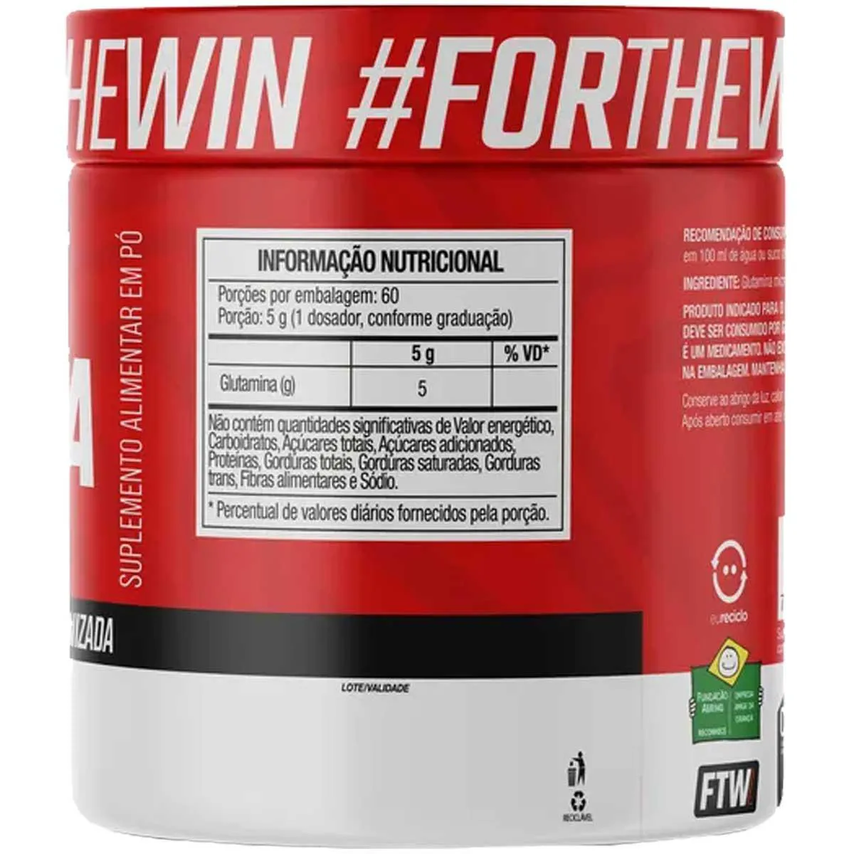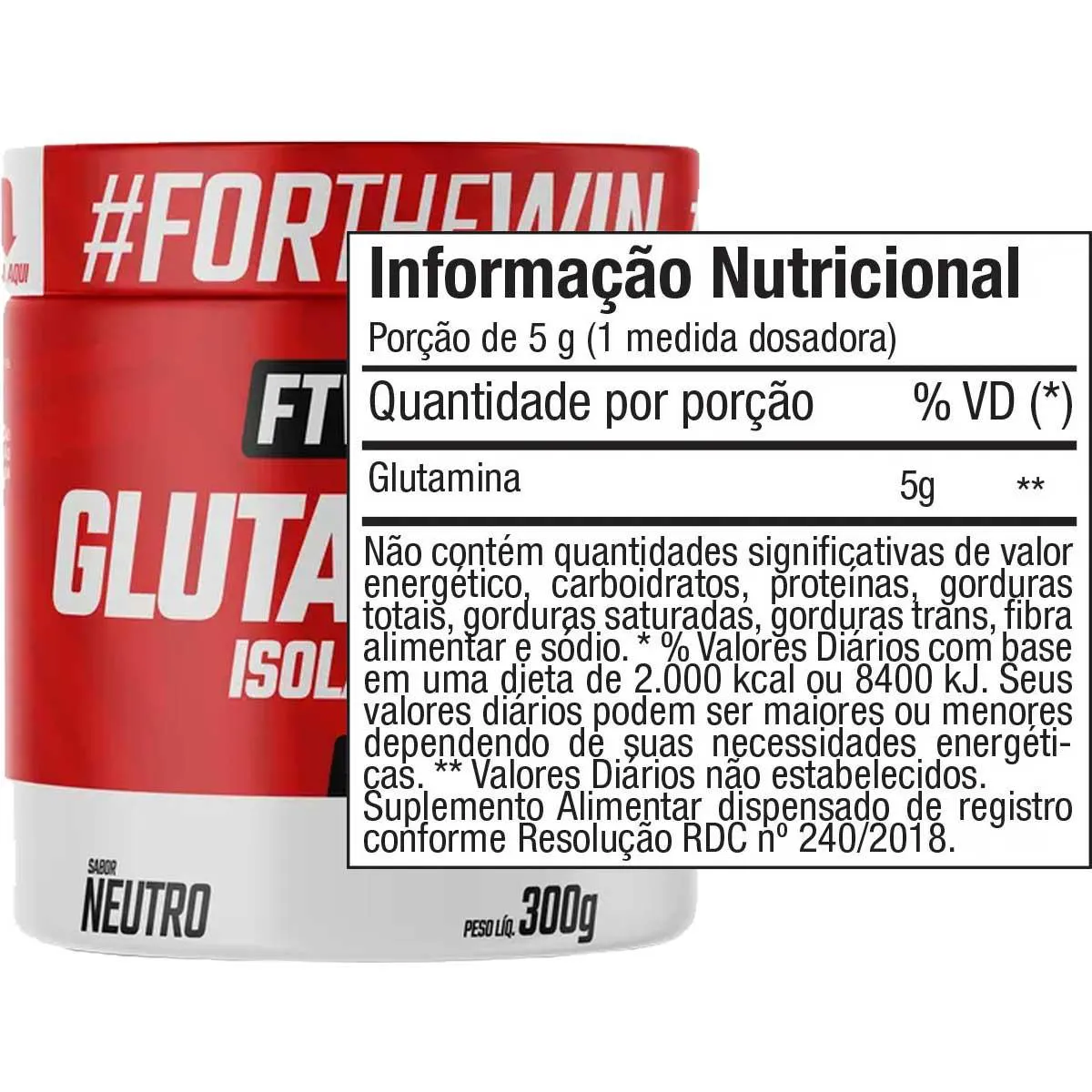 Glutamina 100% Pura e Isolada Pote 300g Ftw