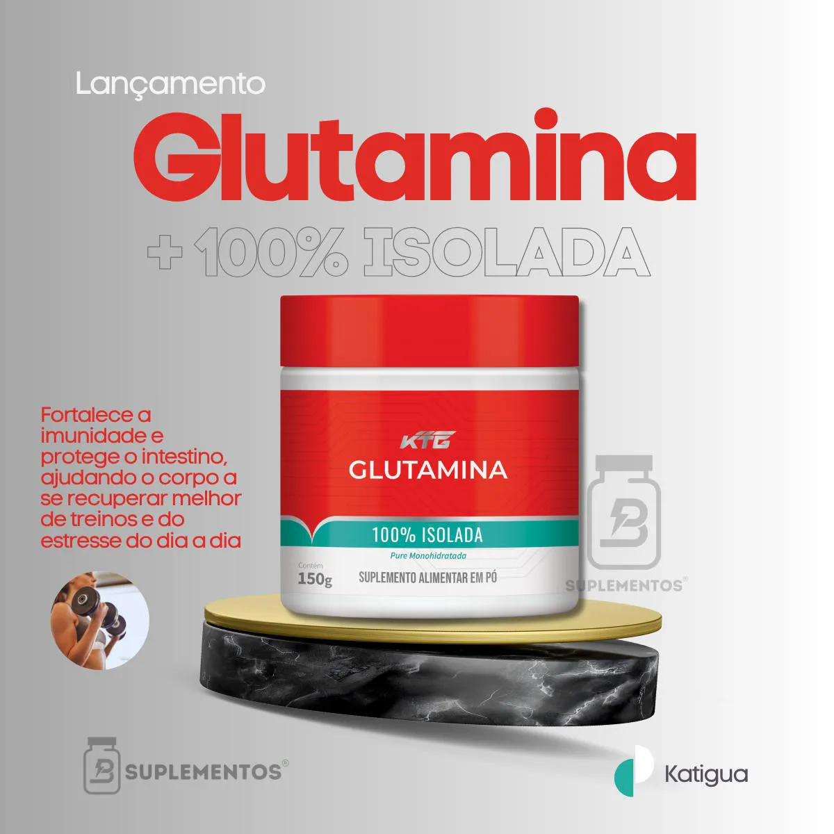 Modo de uso: Diluir 5 g (1 medida) em 200 mL de água ou bebida de sua preferência, 1 vez ao dia. Katiguá – Recuperação e força em cada treino.