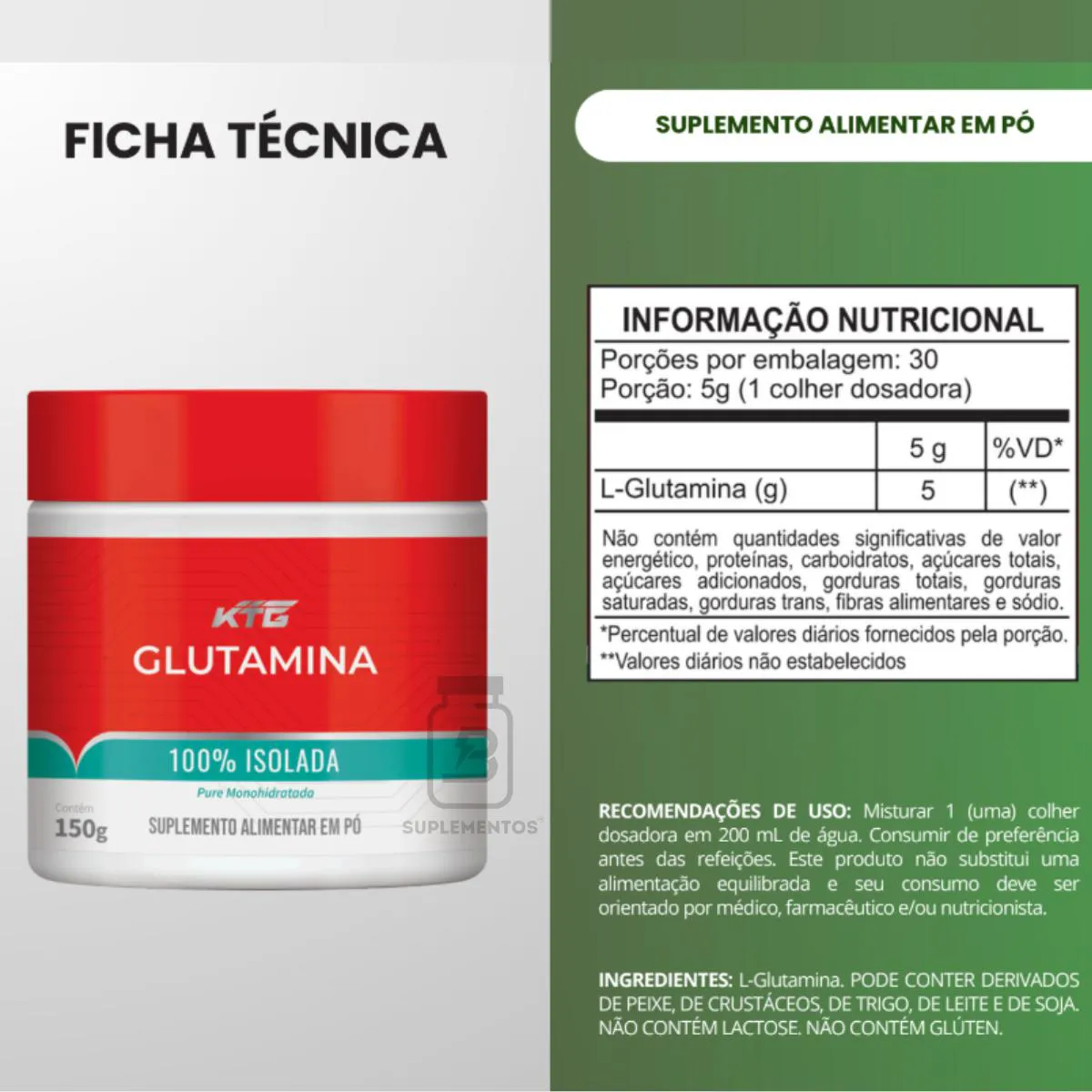 - Contém L-glutamina 100% pura;