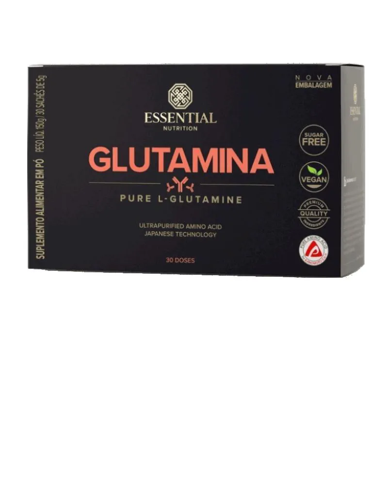 glutamina (30 SACHÊS DE 5g) ESSENTIAL NUTRITIONO QUE É GLUTAMINA ESSENTIALA Glutamina Essential é composta exclusivamente do aminoácido isolado l-glutamina da AJINOMOTO Co., reconhecida internacionalmente pelo padrão de qualidade, utilizando matéria-prima 100% vegetal. O resultado é uma l-glutamina pura e ultrapurificada. Nosso corpo produz glutamina, no entanto, em momentos de estresse extremo, como cirurgias ou exercícios de alta intensidade, nosso organismo aumenta muito a demanda por este aminoácido. Nesses casos, seria interessante a suplementação de glutamina. NÃO CONTÉM*adoçantes artificiais*Corantes artificiais*Açúcar*Glúten*Lactose*Conservantes*Gorduras trans*Aminoácido de origem animal DIFERENCIAL L-GLUTAMINA AJINOMOTOGlutamina Essential foi desenvolvida única e exclusivamente com aminoácido isolado AJINOMOTO Co. – empresa japonesa pioneira e líder mundial na produção, pesquisa e desenvolvimento de tecnologia para aminoácidos. O grau de pureza AJINOMOTO é internacionalmente reconhecido como excelência de mercado. Seus aminoácidos são obtidos exclusivamente pelo processo de fermentação a partir de fontes vegetais (cana-de-açúcar). Os suplementos Essential Nutrition utilizam 100% aminoácidos AJINOMOTO e, por esse motivo, apresentam o selo PURE AMINO ACID da Ajinomoto Co., estabelecendo um novo padrão global de qualidade e confiabilidade.