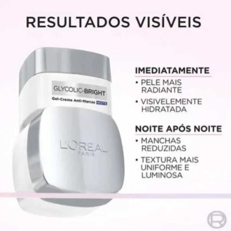 Glycolic-Bright Noite Gel Creme Facial Anti-Marcas L'oreal 49G