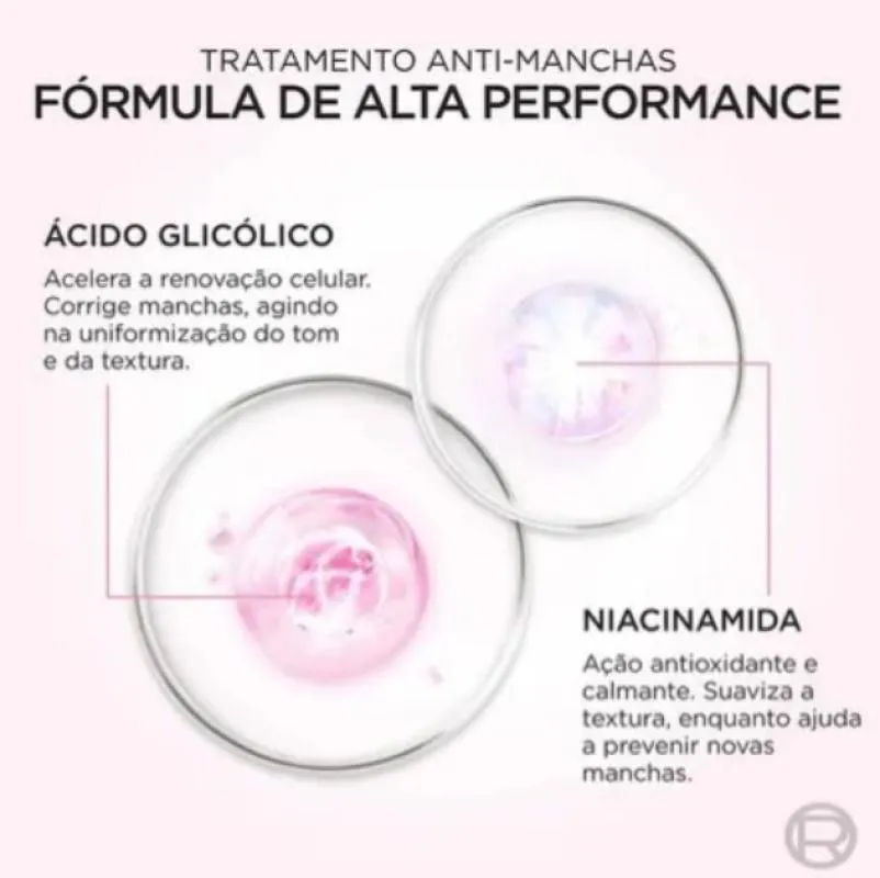 Enriquecida com ingredientes altamente utilizados por dermatologistas para garantir uma pele mais uniforme, luminosa e marcas reduzidas ao acordar.