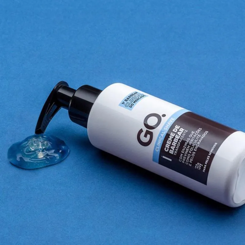 Feito para peles ultra sensíveis, o GO. Creme de Barbear Transparente Clinical Shave é o primeiro Barbear Clinical do mercado. Ideal para quem costuma fazer a barba toda ou apenas o contorno, sua fórmula combina o ultra deslizamento de seus ativos com as enzimas cicatrizantes, o que garante uma melhor performance do seu aparelho de barbear e a pele livre de irritações.