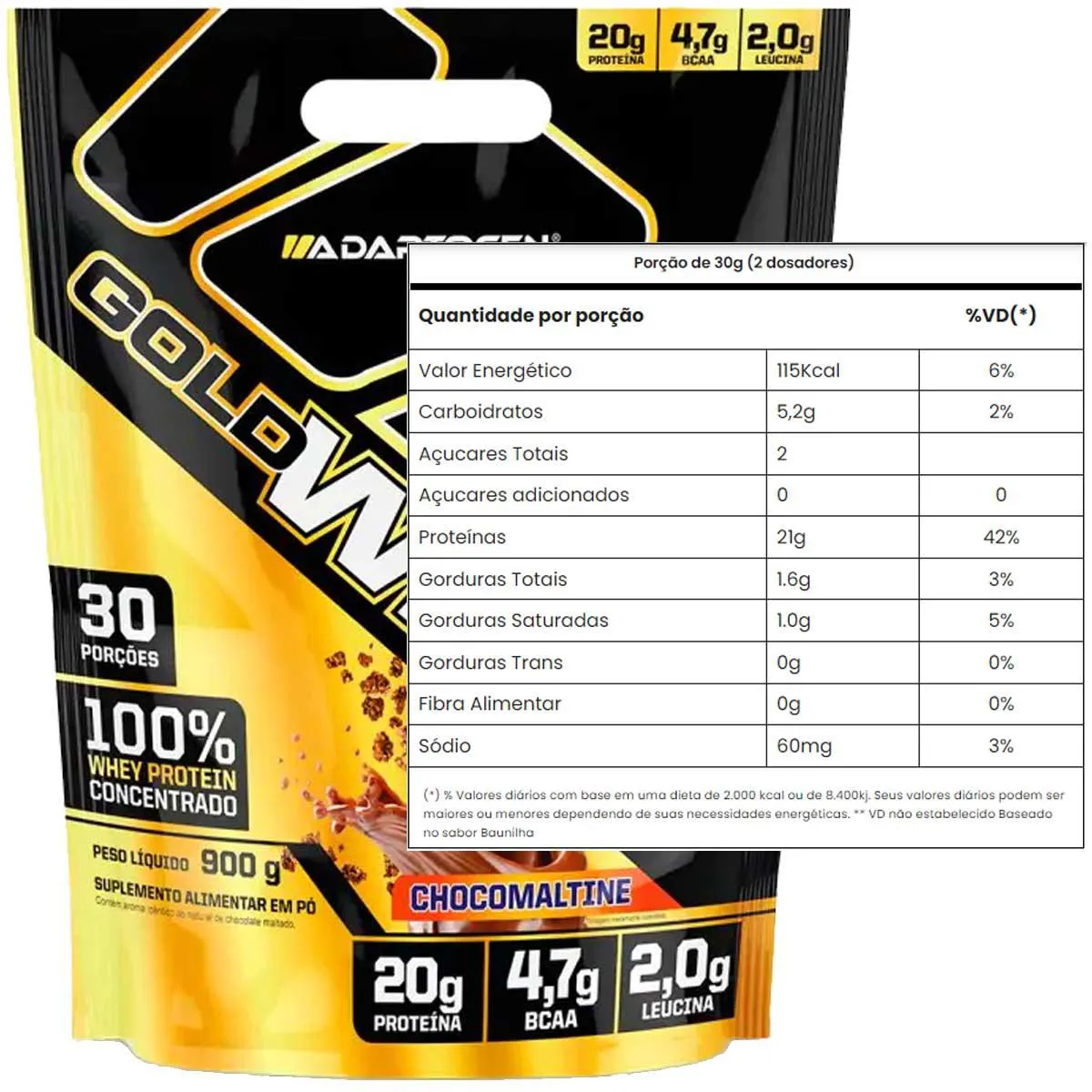 Gold Whey Protein Refil 900g Adaptogen Sabor Chocomaltine