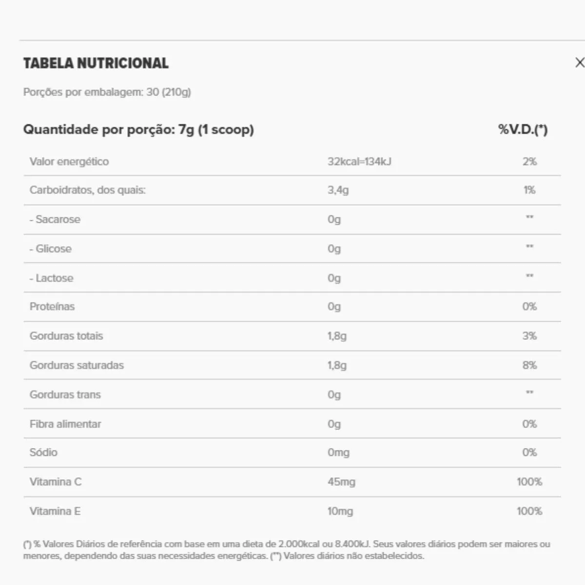 - Composto por ingredientes naturais sem adição de açúcar, glúten, lactose ou corantes artificiais.