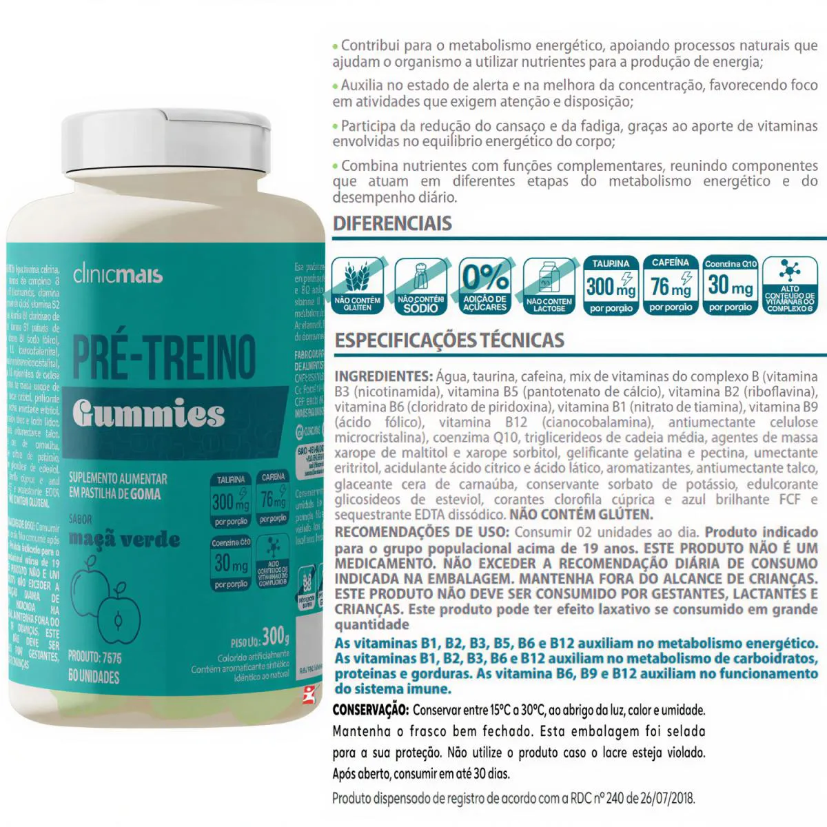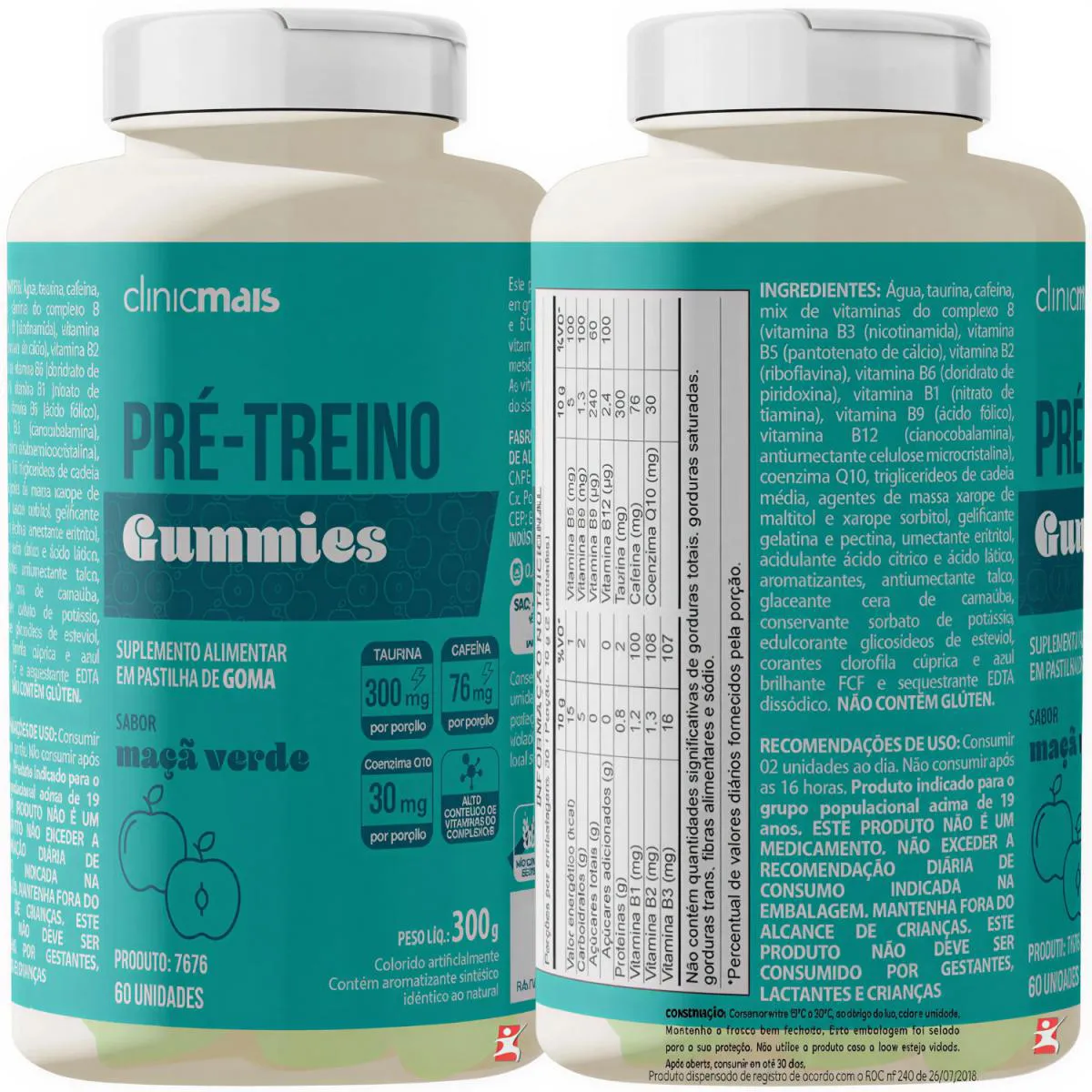 Gomas de Pré-Treino Sabor Maçã Verde 60 Gummies - Clinicmais