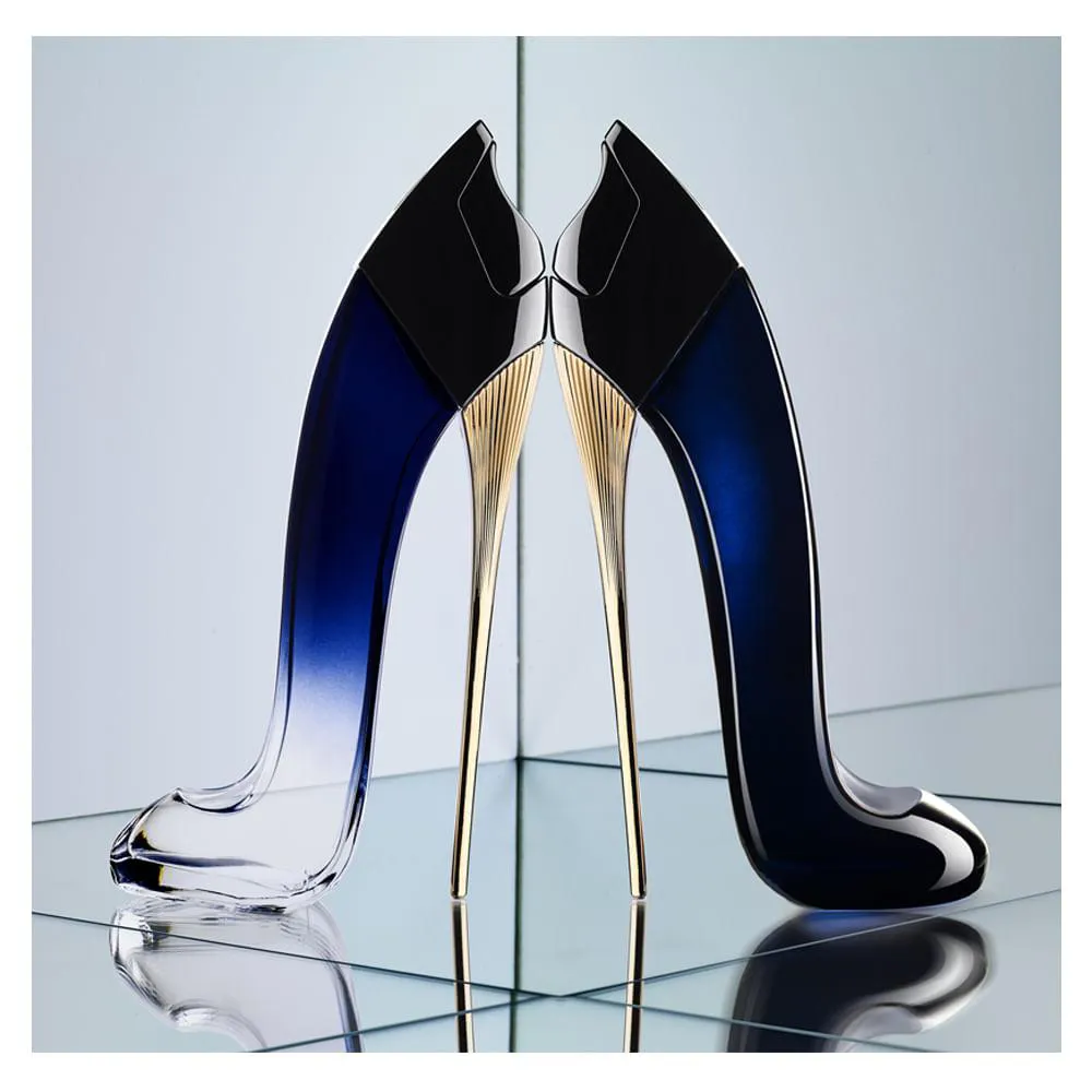 O frasco de laca preta com salto stiletto dourado e estriado, além de um complexo sistema de pressão interna que permite o pulverizador seja difundido desde a liberação perto do topo, rompe o molde. "Queríamos um objeto, não um frasco, e o que é mais poderoso do que estar em cima de um salto? O sistema demorou quatro anos e 600 testes para ser aperfeiçoado. Para este novo frasco, precisamos de mais cem", explica Carolina Herrera de Baez, diretora criativa de Carolina Herrera Fragrances.