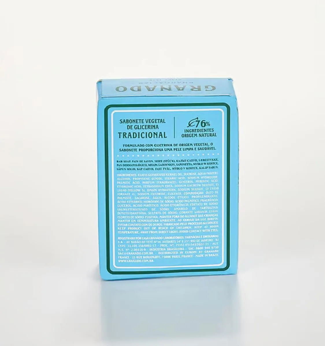 Formulado com glicerina de origem vegetal, o sabonete proporciona uma pele limpa e saudável. Sem gordura animal e dermatologicamente testado.