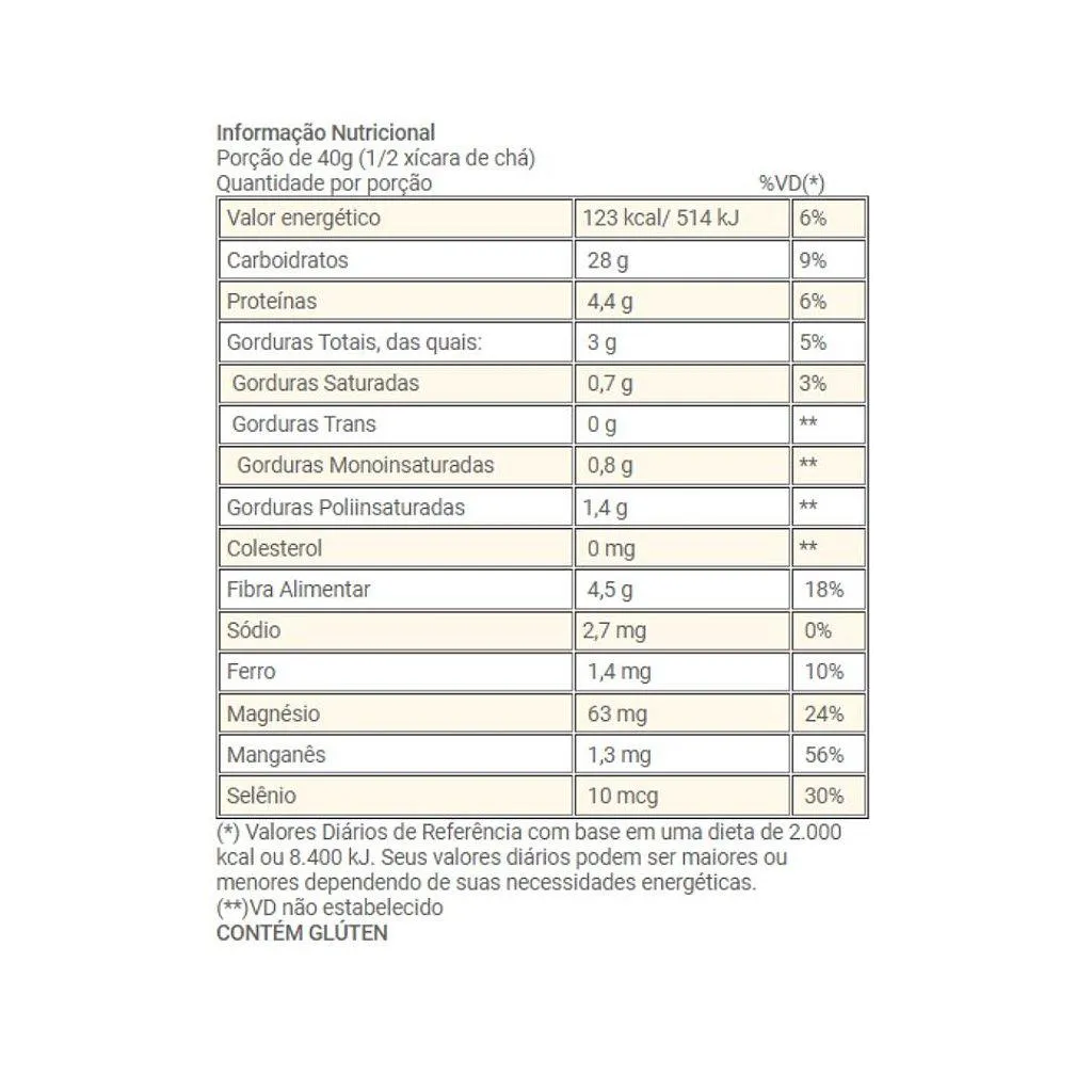 INGREDIENTES: aveia em flocos, açúcar, farelo de trigo, óleo de girassol, extrato de