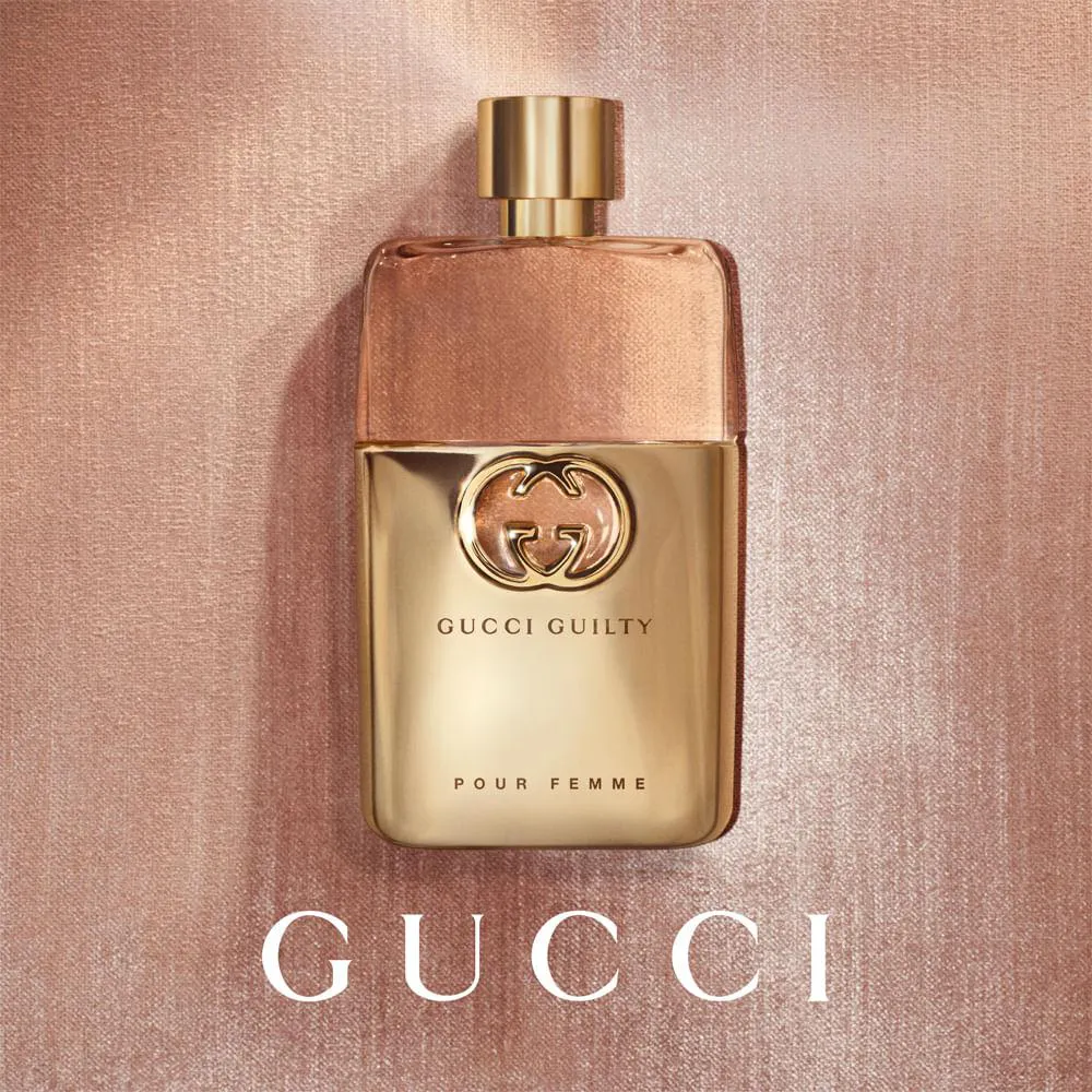 A coleção Guilty Gucci entra em um novo capítulo, reintroduzindo o perfume original Pour Femme como um EDP, que combina notas de topo florais e fragrâncias naturais renovadas.