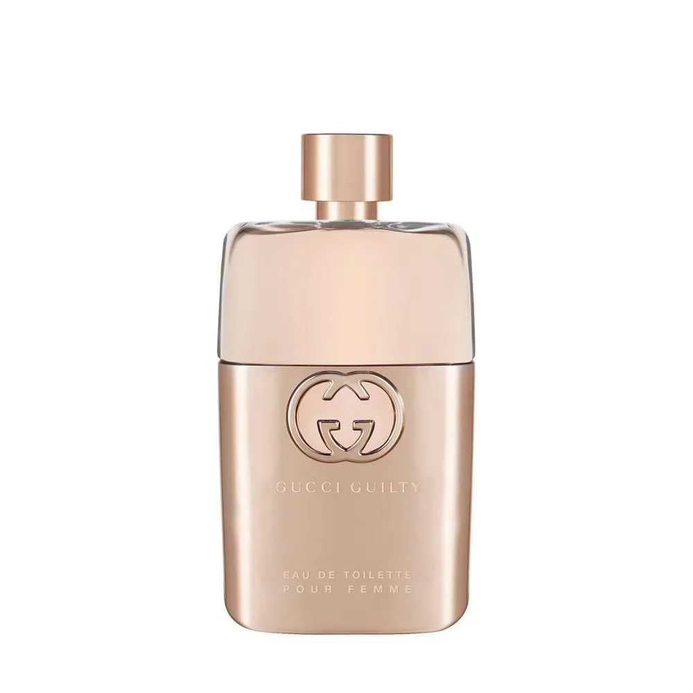 A Gucci Guilty Pour Femme Eau de Toilette é uma fragrância feminina que representa uma declaração moderna de liberdade e autoexpressão, caracterizada por um perfume inovador que quebra padrões tradicionais de gênero em fragrâncias. Composta por um acorde fougère de gerânio, notas de pimenta-rosa, flor de lilás, pêssego, patchuli e âmbar, a fragrância é intimista e mágica.