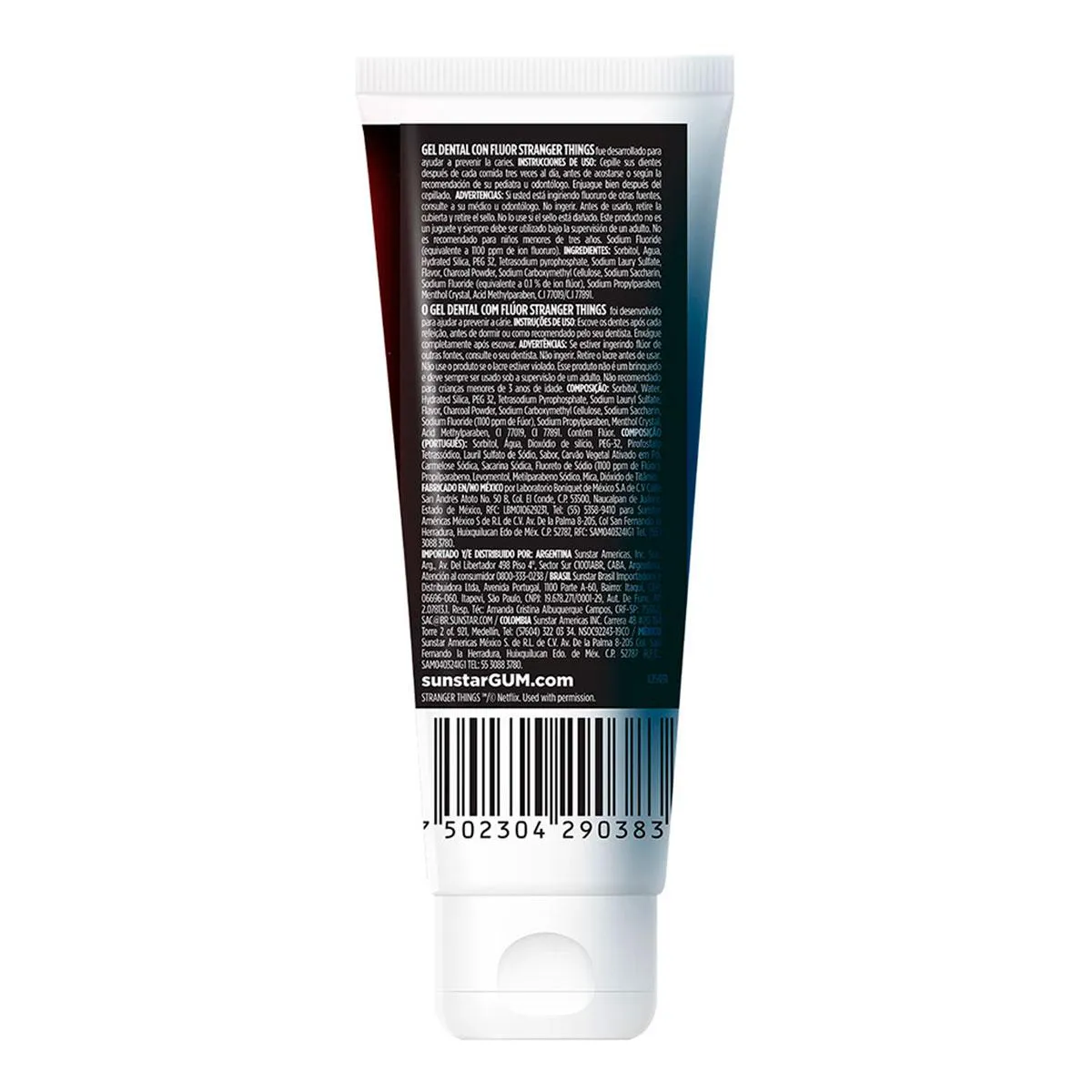 O Gel Dental GUM Stranger Things foi desenvolvido para proporcionar uma higiene bucal eficaz e divertida. Sua fórmula com flúor atua na prevenção da cárie e na remineralização do esmalte dentário, tornando os dentes mais resistentes aos efeitos dos ácidos da dieta e da placa bacteriana. Com sabor Menta Cool, transforma o momento da escovação em uma experiência refrescante e vibrante. A edição especial é ideal para quem busca cuidado diário com estilo, especialmente fãs da série Stranger Things™.