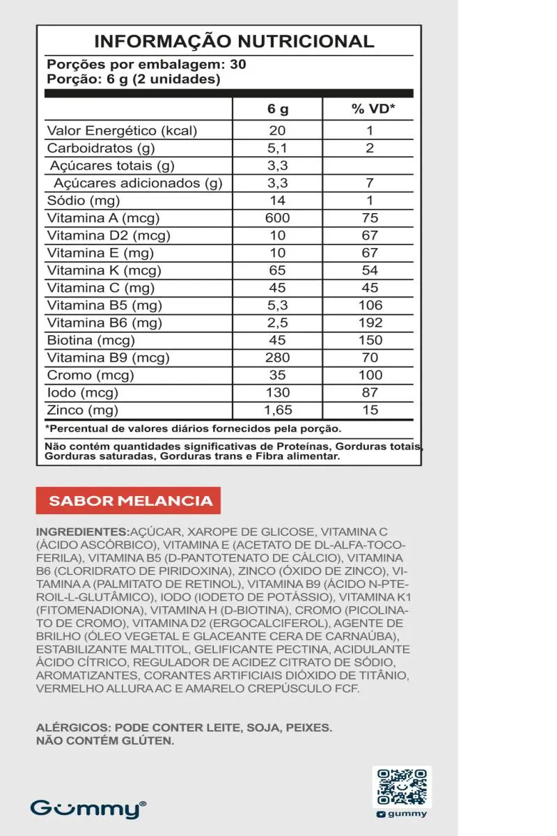 Gummy Hair Vitamin Sabor Melancia 60 Pastilhas de Goma