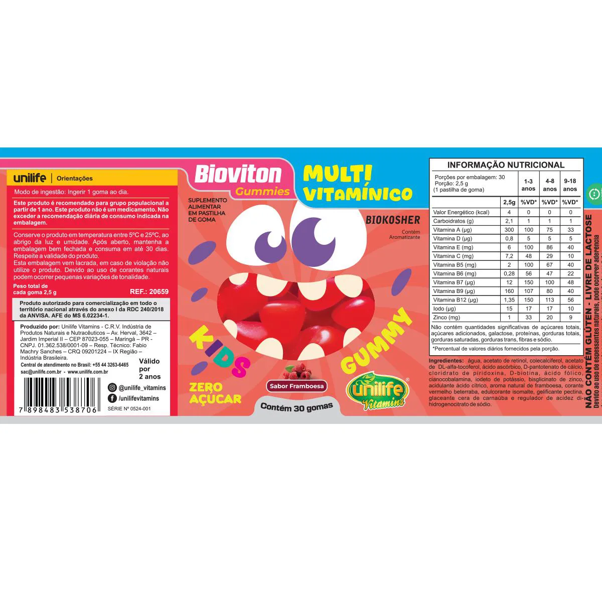 Gummy Kids Multivitamínico Unilife 30 Gomas Framboesa