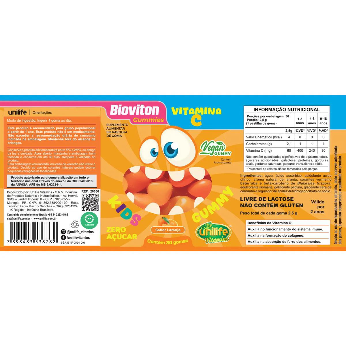 O que é e para que serve o Gummy Kids vitamina c Unilife 30 Gomas Laranja?
