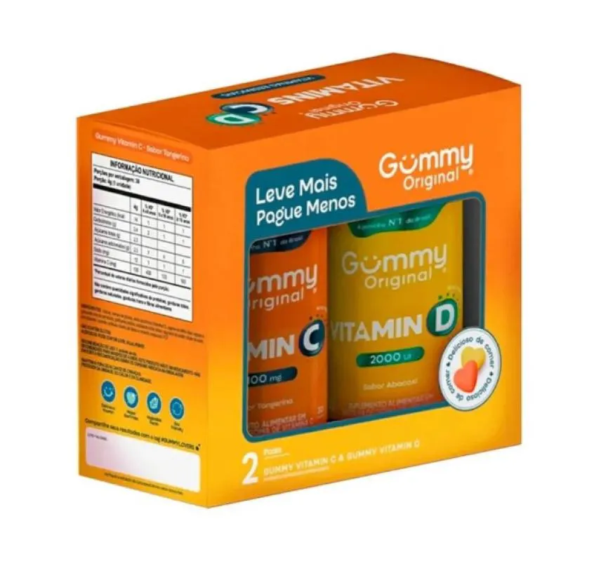 Promopacks Gummy Vitamin D (30 gomas) + Vitamin C (30 gomas) A sua maneira mais saborosa de cuidar dos ossos e imunidade O Gummy vitamina d, está disponível no sabor de abacaxi e vai auxiliar na formação dos ossos e dos dentes. Basta apenas uma gominha por dia e você terá um auxilio no funcionamento do sistema imune e no funcionamento muscular.