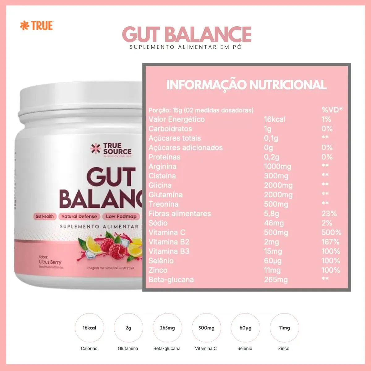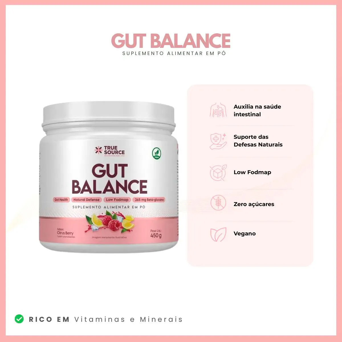 O Gut Balance 450g da marca True Source é um suplemento nutricional em pó que oferece uma solução prática para quem busca aumentar a qualidade de sua alimentação. Com uma combinação de vitaminas e minerais essenciais, esse produto é ideal para aqueles que buscam complementar suas refeições de forma equilibrada e saudável. Gut Balance 450g True Source Prebiótico em pó com blend de FOS e MOS, à base de alga marinha. Desenvolvido para oferecer suporte diário à saúde intestinal e conforto digestivo. Ação sobre a microbiota intestinal Combina oligossacarídeos de cadeia curta (FOS) e média (MOS), que auxiliam no crescimento de bactérias benéficas. Contribui para o equilíbrio da flora intestinal e melhora do trânsito. Composição segura e limpa Livre de glúten, lactose, corantes e adoçantes artificiais. Produto vegano, sem ingredientes de origem animal e sem aditivos desnecessários. Modo de uso Consumir 15g por dia (duas medidas dosadoras). Diluir em 200ml de água, suco ou bebida de preferência. Recomenda-se uso diário para melhores resultados. Produto indicado para adultos a partir de 19 anos.