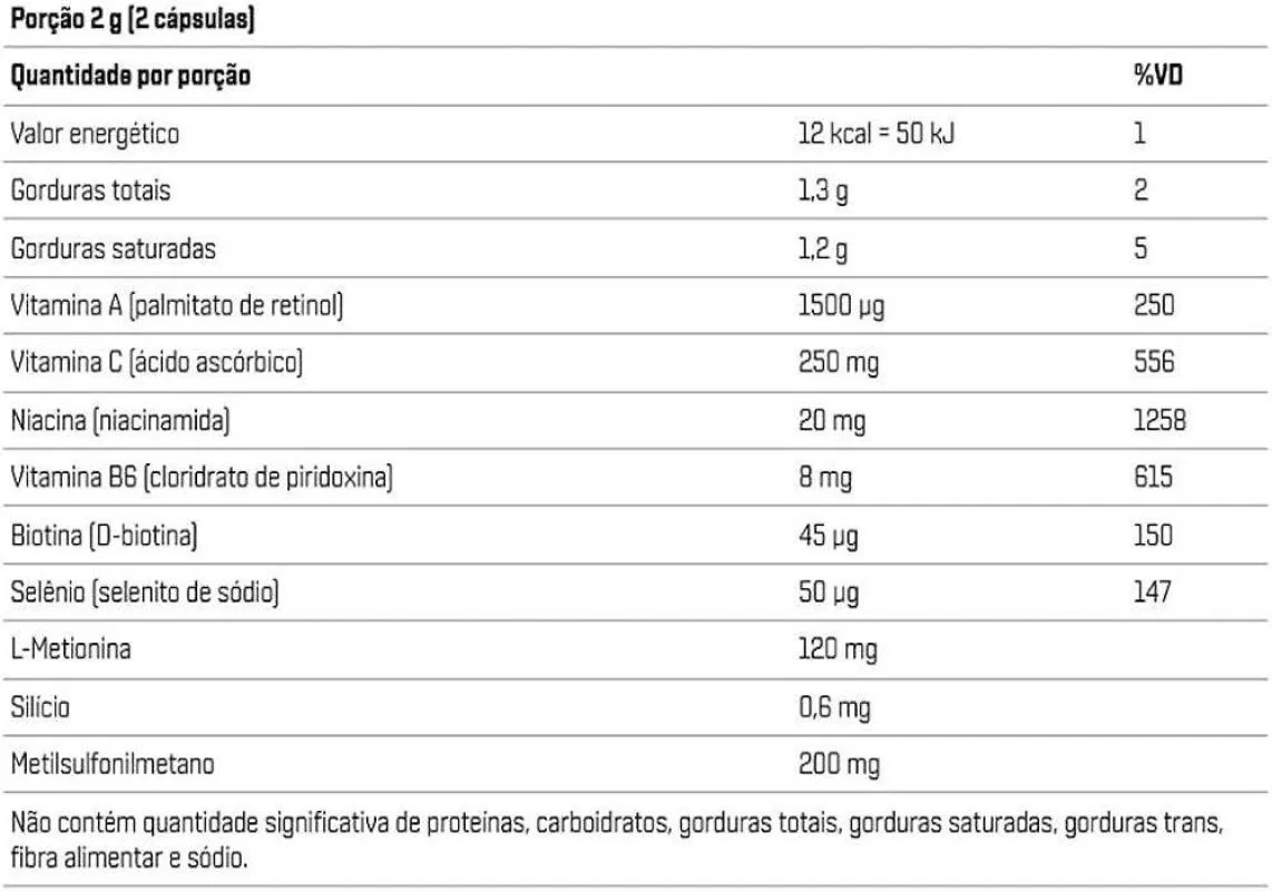 - Contribui para a saúde complementar de cabelos, unhas e pele.