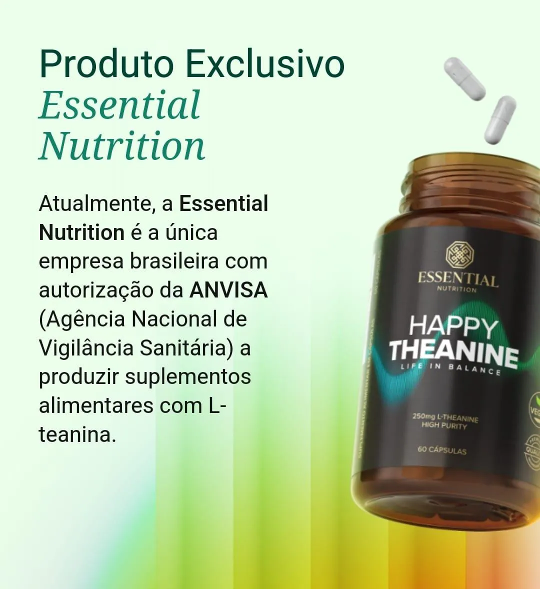 Produto formulado com L-teanina pura e concentrada — uma poderosa substância bioativa encontrada naturalmente nas folhas de Camellia sinensis. Enquanto o chá verde e o matchá, que são obtidos a partir dessa mesma planta, contêm cerca de 30mg de L-teanina por xícara, uma cápsula de Happy Theanine fornece 250mg com elevado grau de pureza. Quando estamos em equilíbrio com as nossas emoções, conseguimos celebrar a vida, colocar atenção no momento presente, realizar as nossas atividades diárias de forma mais produtiva e desfrutar das relações pessoais com muito mais leveza e alegria.Algumas práticas — como técnicas de meditação, exercícios físicos, sono de qualidade e nutrição e suplementação adequadas — podem nos amparar nessa busca contínua pelo equilíbrio, contribuindo para um estado de relaxamento e harmonia do corpo e da mente.