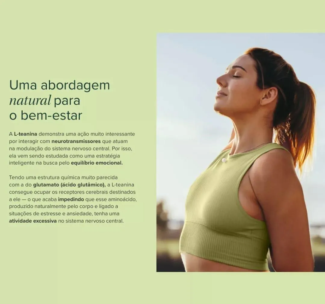 Desde a sua descoberta, a L-teanina tem sido estudada como parte dessas estratégias que visam o equilíbrio nutricional e que nos tornam mais aptos a responder às demandas da vida, que eventualmente podem ser influenciadas pelas reações desencadeadas pelo estresse. Tendo uma estrutura química muito parecida com a do glutamato (ácido glutâmico), a L-teanina consegue ocupar os receptores cerebrais destinados a ele — o que acaba limitando a atividade excessiva do glutamato, aminoácido produzido naturalmente pelo corpo e ligado a diversas funções do sistema nervoso central.Pureza & Poder
