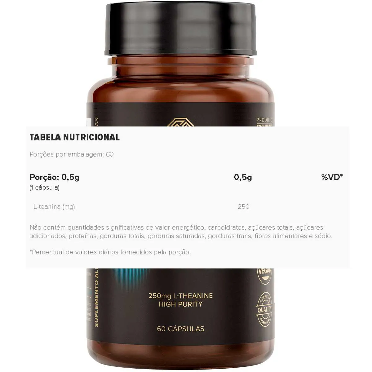 - Contém 250mg de L-teanina pura e concentrada por cápsula.